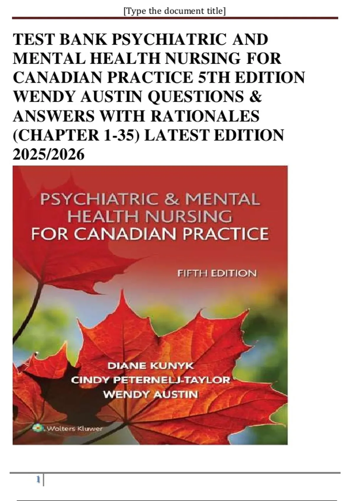 TEST BANK PSYCHIATRIC AND MENTAL HEALTH NURSING FOR CANADIAN PRACTICE 5TH EDITION WENDY AUSTIN QUESTIONS & ANSWERS WITH RATIONALES (CHAPTER 1-35) LATEST EDITION 2025/2026
