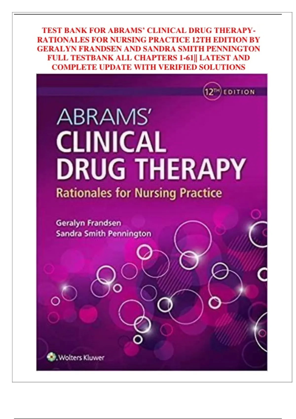 TEST BANK FOR ABRAMS’ CLINICAL DRUG THERAPY-