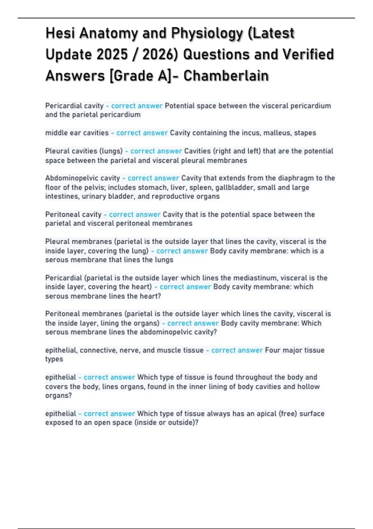 ,Hesi Anatomy and Physiology (Latest