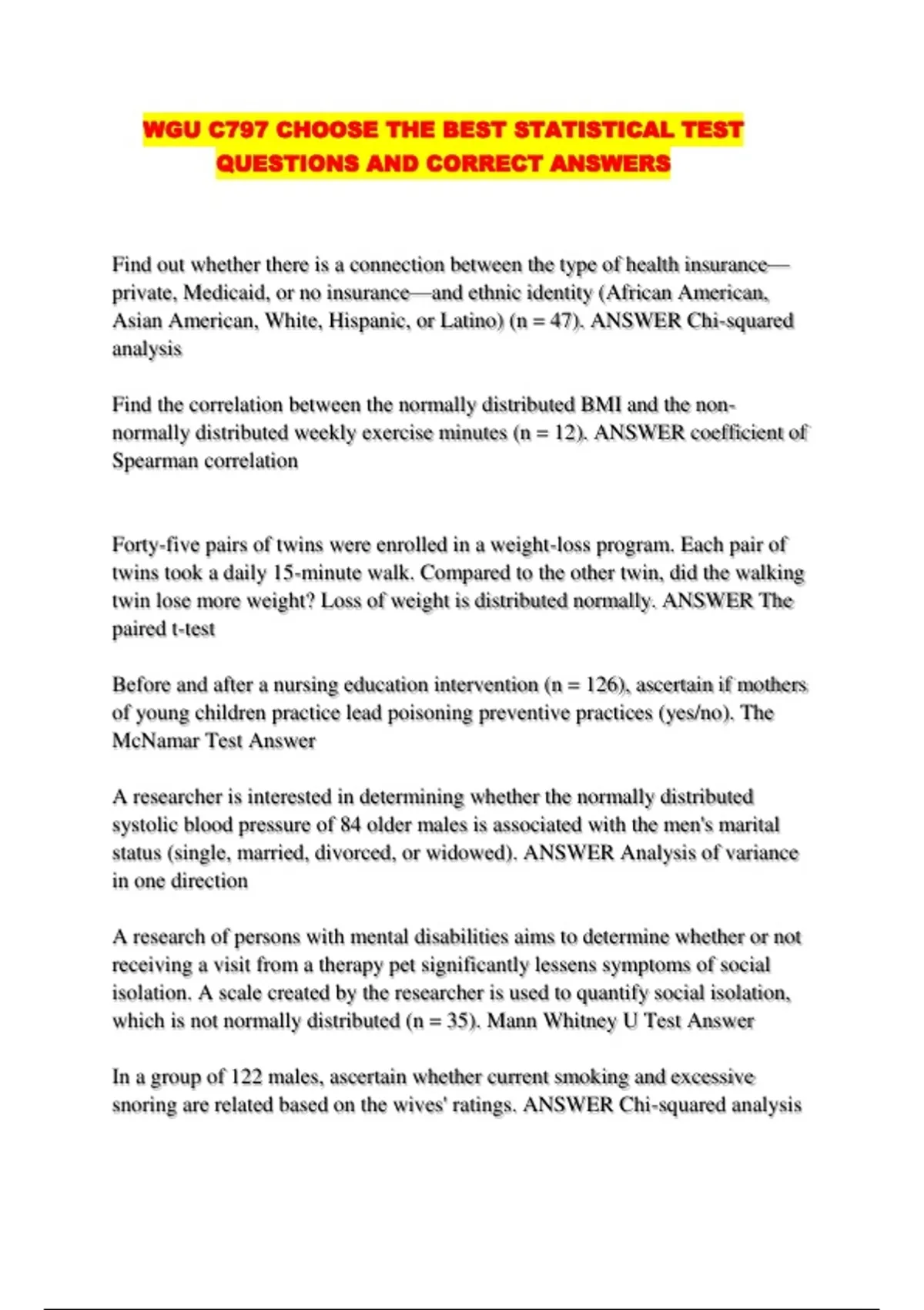 WGU C797 CHOOSE THE BEST STATISTICAL TEST