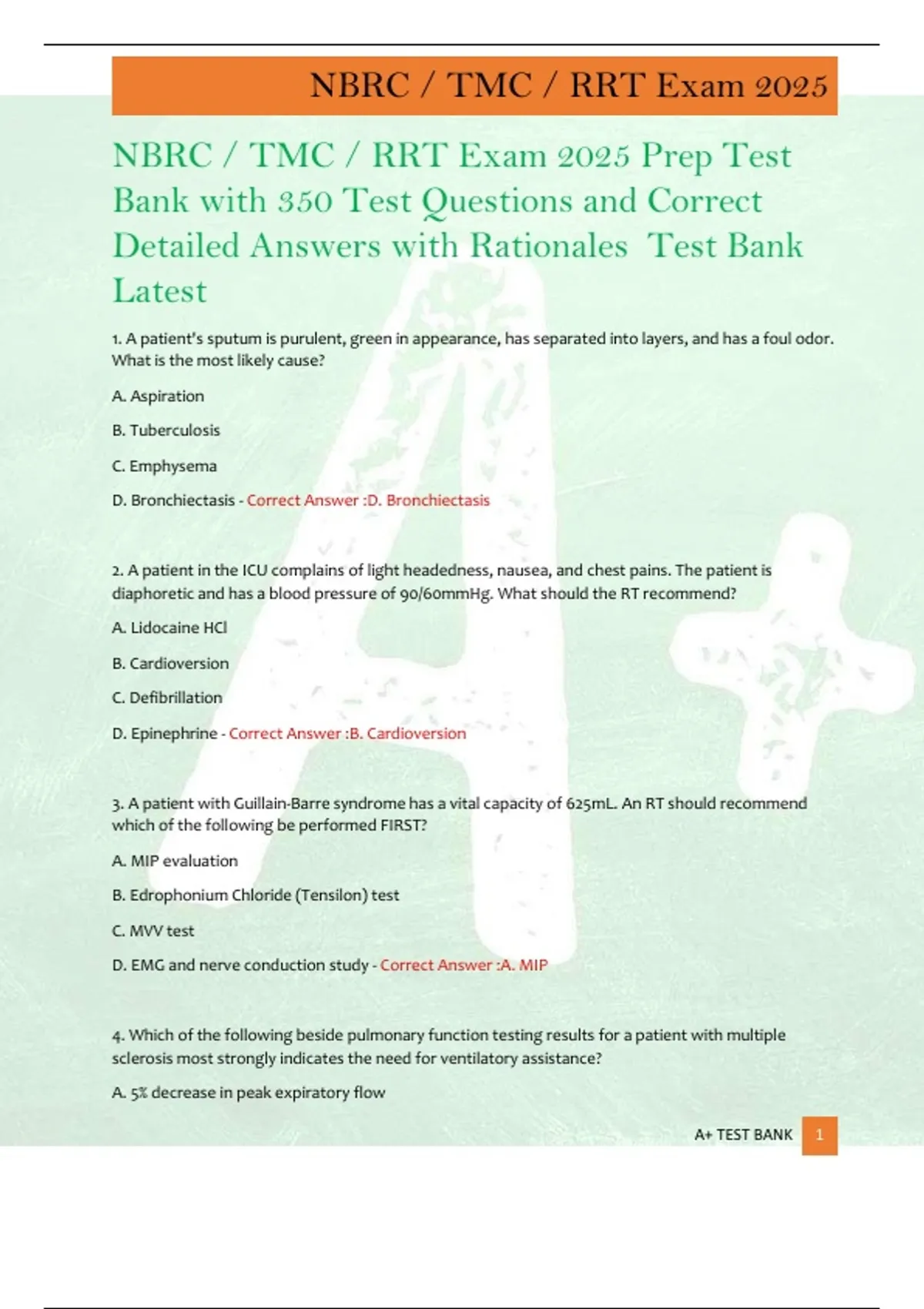 NBRC / TMC / RRT Exam 2025 Prep Test