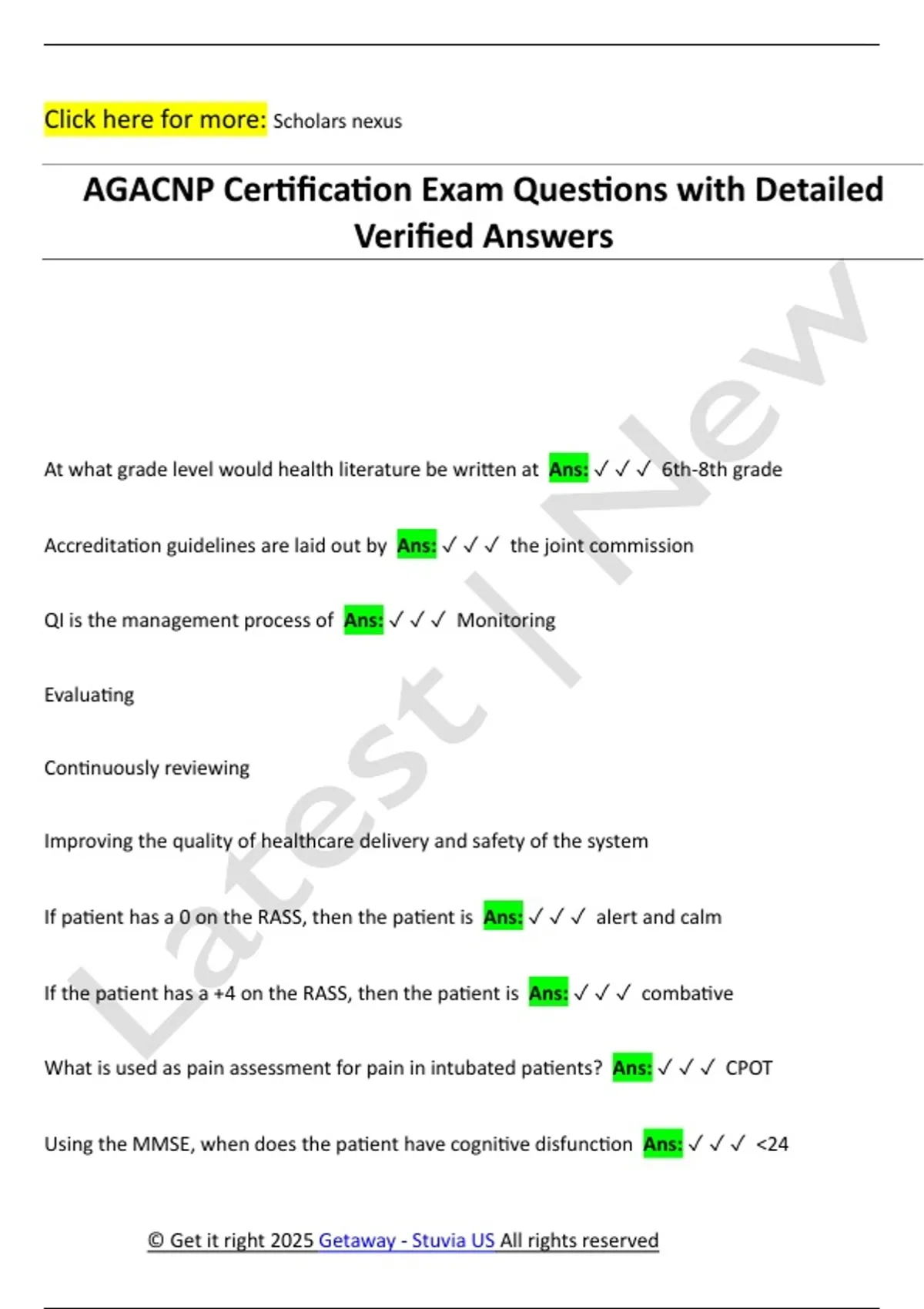 AGACNP Certification Exam Questions with Detailed Verified Answers