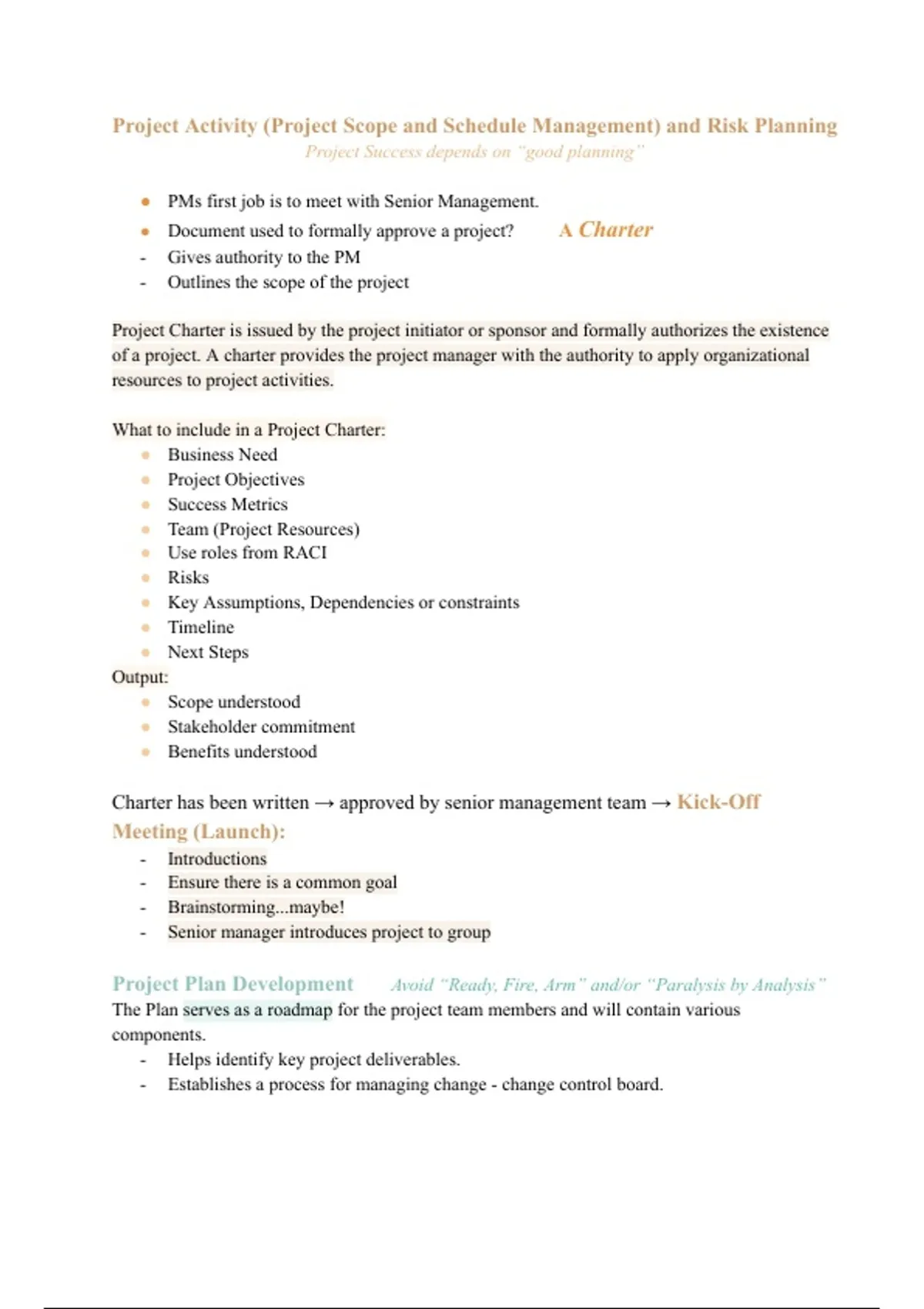 Project Activity (Project Scope and Schedule Management) and Risk Planning