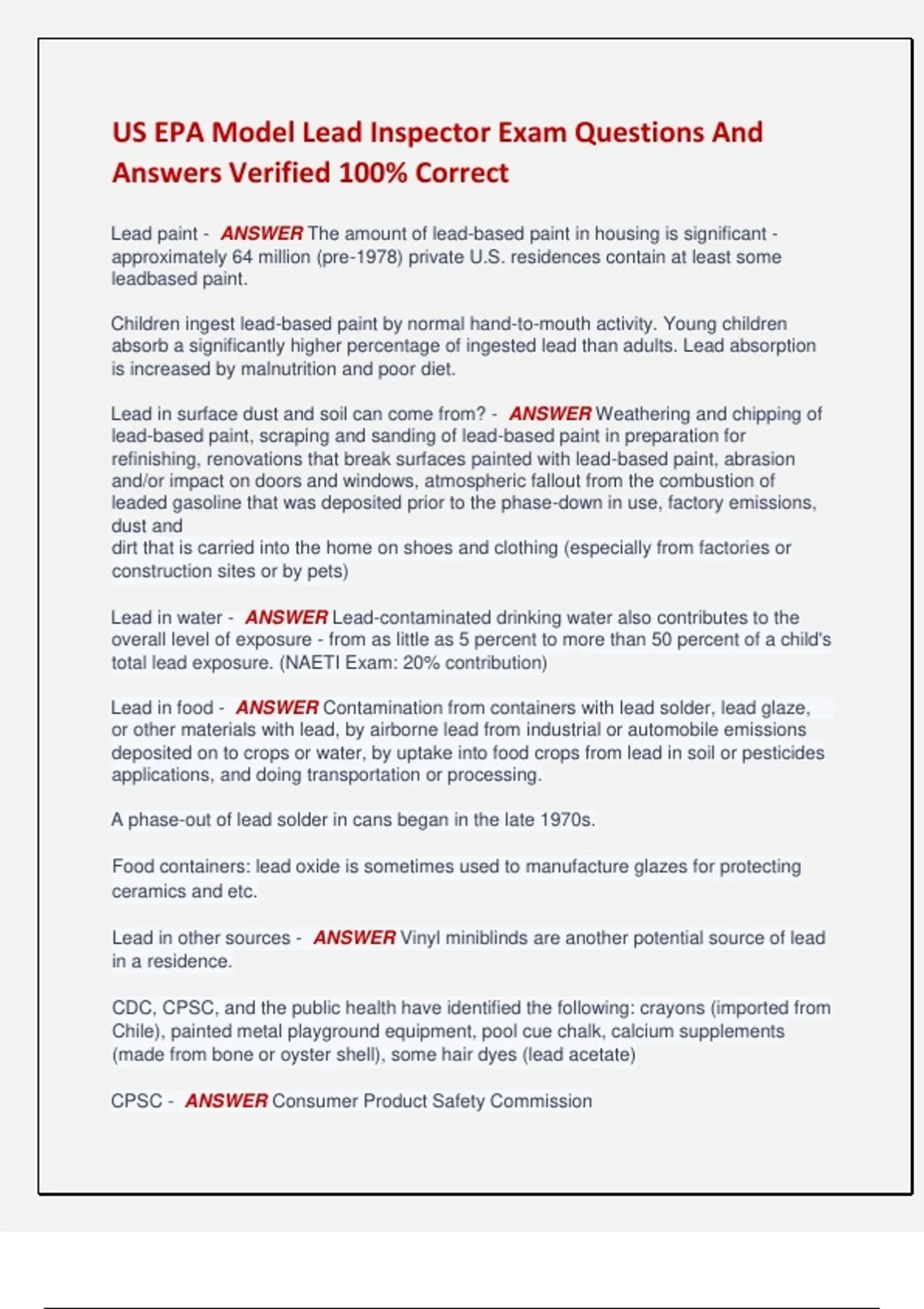 LBP - ANSWER Lead-Based Paint
