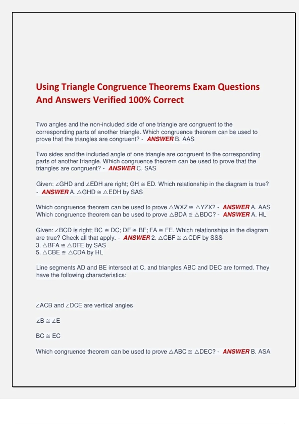 Using Triangle Congruence Theorems Exam Questions And Answers Verified 100% Correct