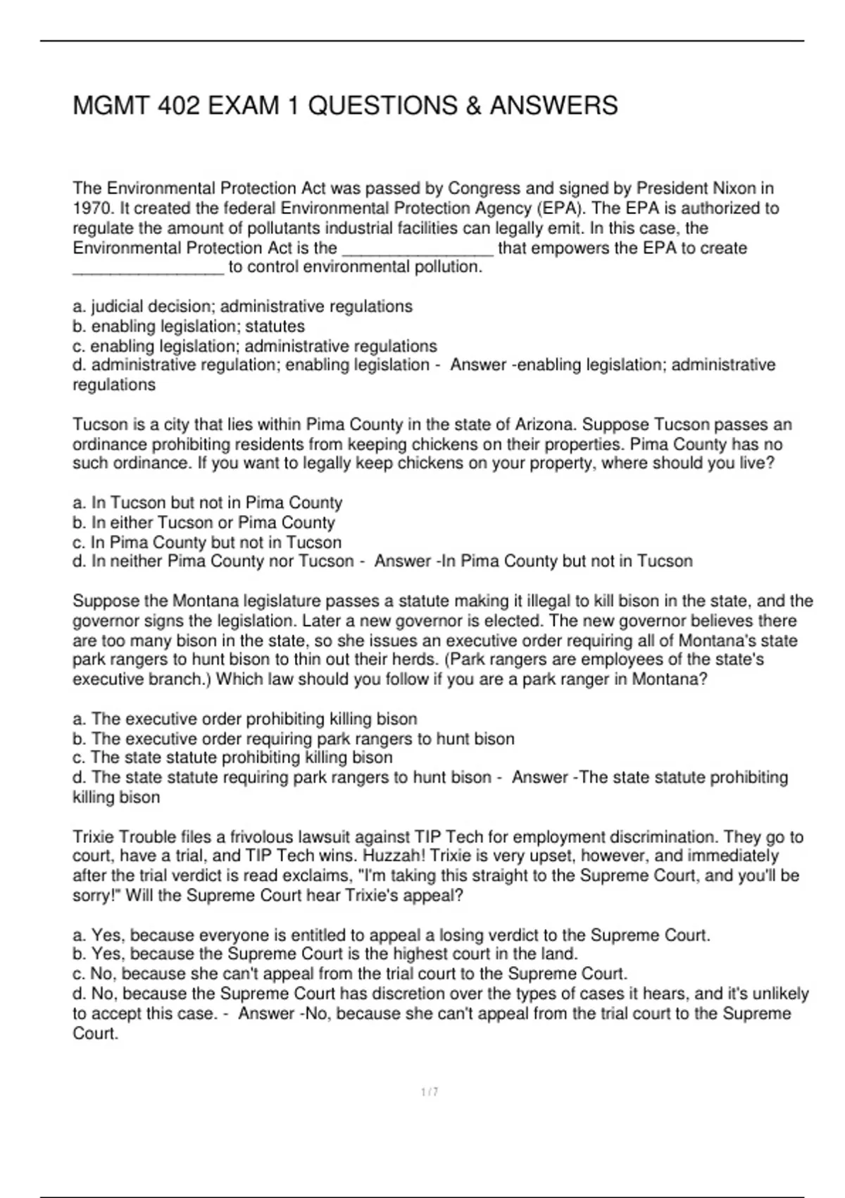 MGMT 402 EXAM 1 QUESTIONS & ANSWERS