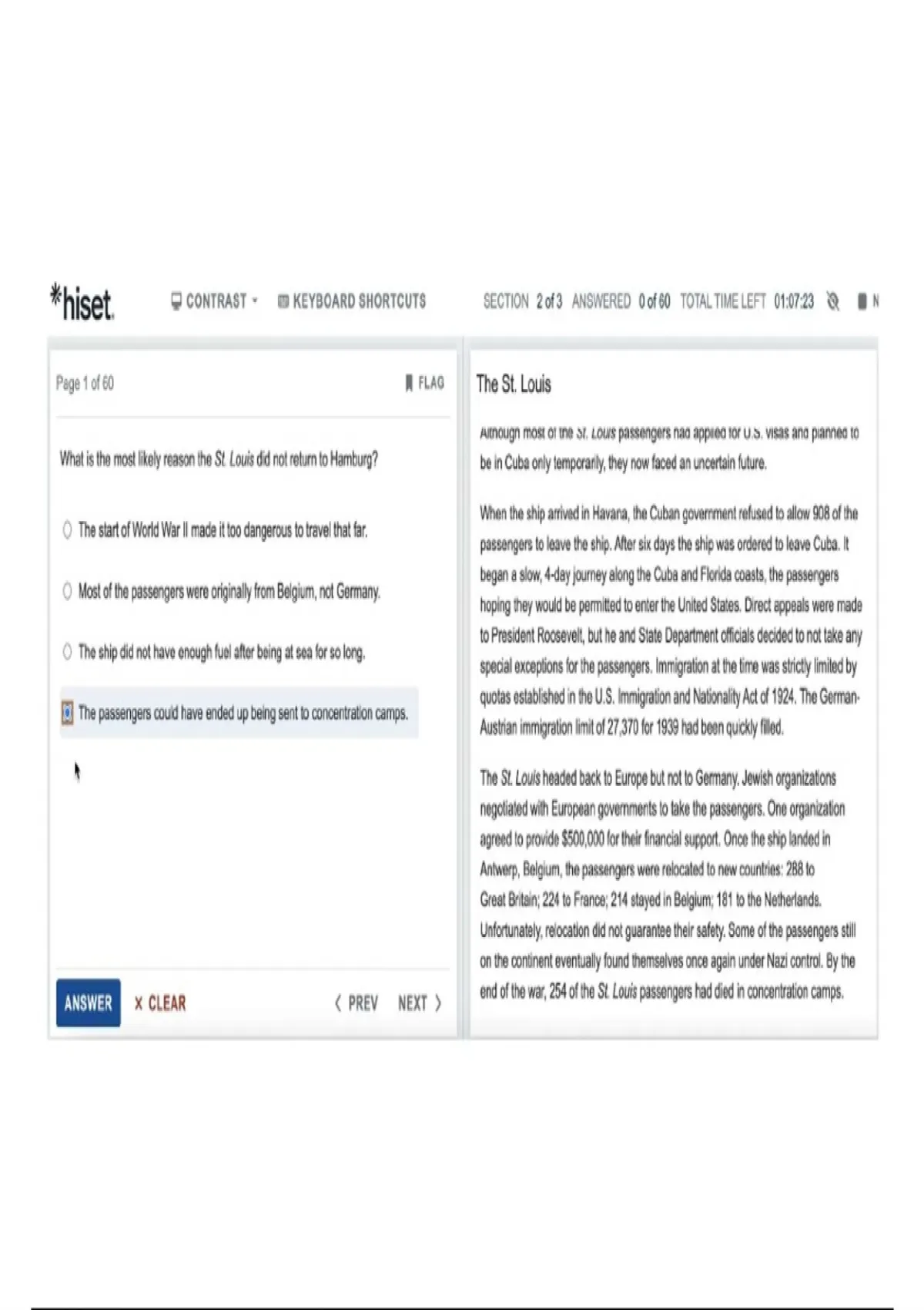 This document is the official Social Studies examination for the HiSET high school equivalency test, reflecting the current standards for the 2025/2026 testing cycle. It provides a complete and authentic review resource for Section 2 of the exam, featuring a full set of 60 questions with verified answers to solidify content understanding and test readiness. The content is structured to assess a comprehensive range of social studies competencies across core disciplines, including: U.S. and World History: Analyzing primary and secondary sources on pivotal events such as the voyage of the MS St. Louis, U.S. territorial expansion and "Manifest Destiny," the Harlem Renaissance, and the Cold War Space Race. Civics and Government: Understanding the distribution of powers between national and state governments, the structure and functions of Congress, the role of the judicial branch, and the responsibilities of citizenship. Economics: Applying fundamental concepts such as compound interest, the Consumer Price Index (CPI), inflation, the role of the Federal Reserve, and the implications of national debt. Geography: Interpreting maps to understand migration patterns and push/pull factors, and identifying key global landmarks like the Prime Meridian. Sociology and Current Issues: Evaluating real-world scenarios like public hearings on zoning, analyzing population pyramids, and critiquing the methodology and conclusions of public opinion surveys. This resource is indispensable for candidates aiming to gauge their proficiency in critical thinking, document analysis, and data interpretation. It serves as a definitive tool for self-assessment and final preparation for the HiSET Social Studies section, ensuring familiarity with the test's structure, question formats, and the depth of its content.