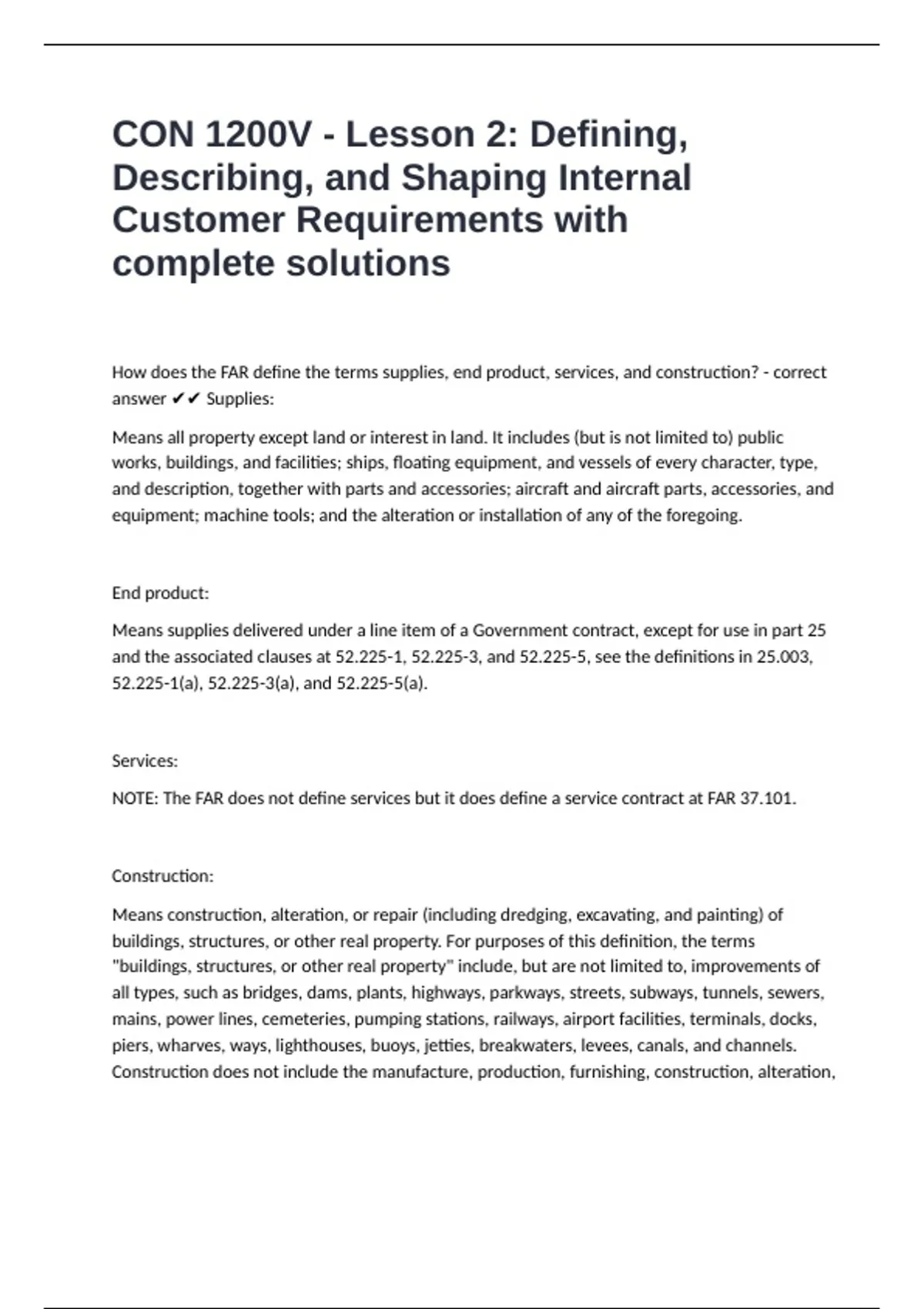 CON 1200V - Lesson 2: Defining, Describing, and Shaping Internal Customer Requirements with complete solutions
