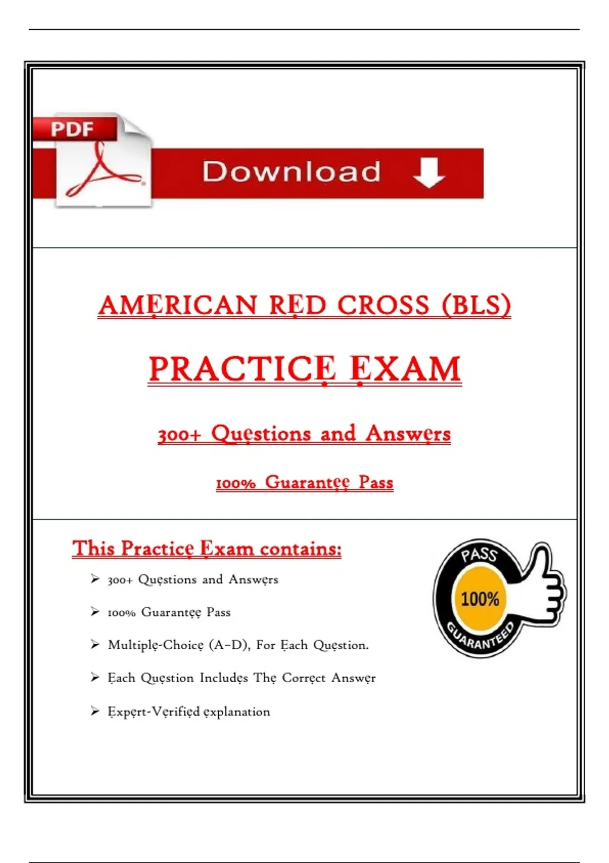 American Red Cross BLS Practice Exam 2025 | 300+ Questions & Verified Answers | 100% Pass Guarantee | Instant Download PDF