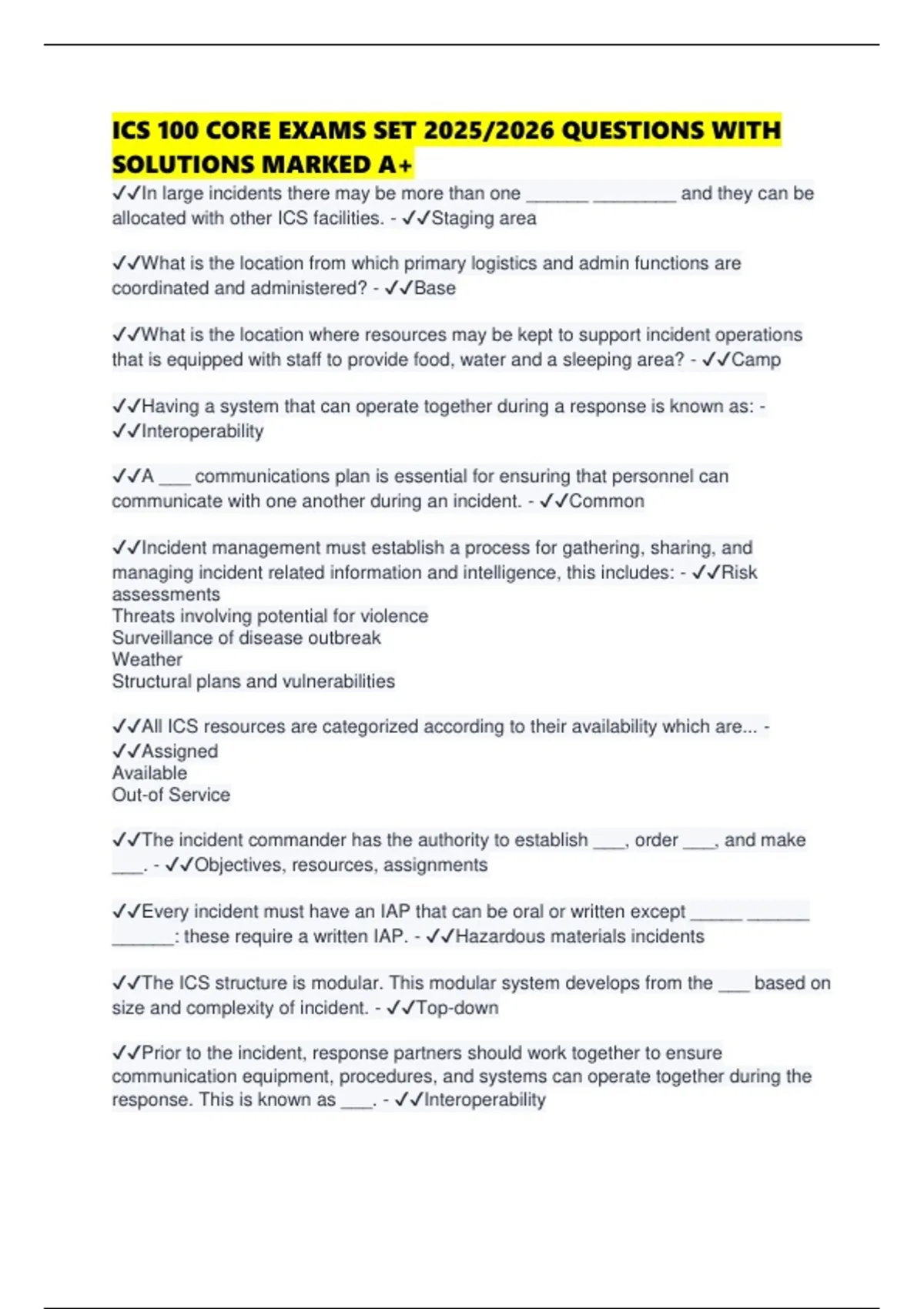 ✔✔Every incident within ICS must have an ____ ______ _____? - ✔✔Incident Action