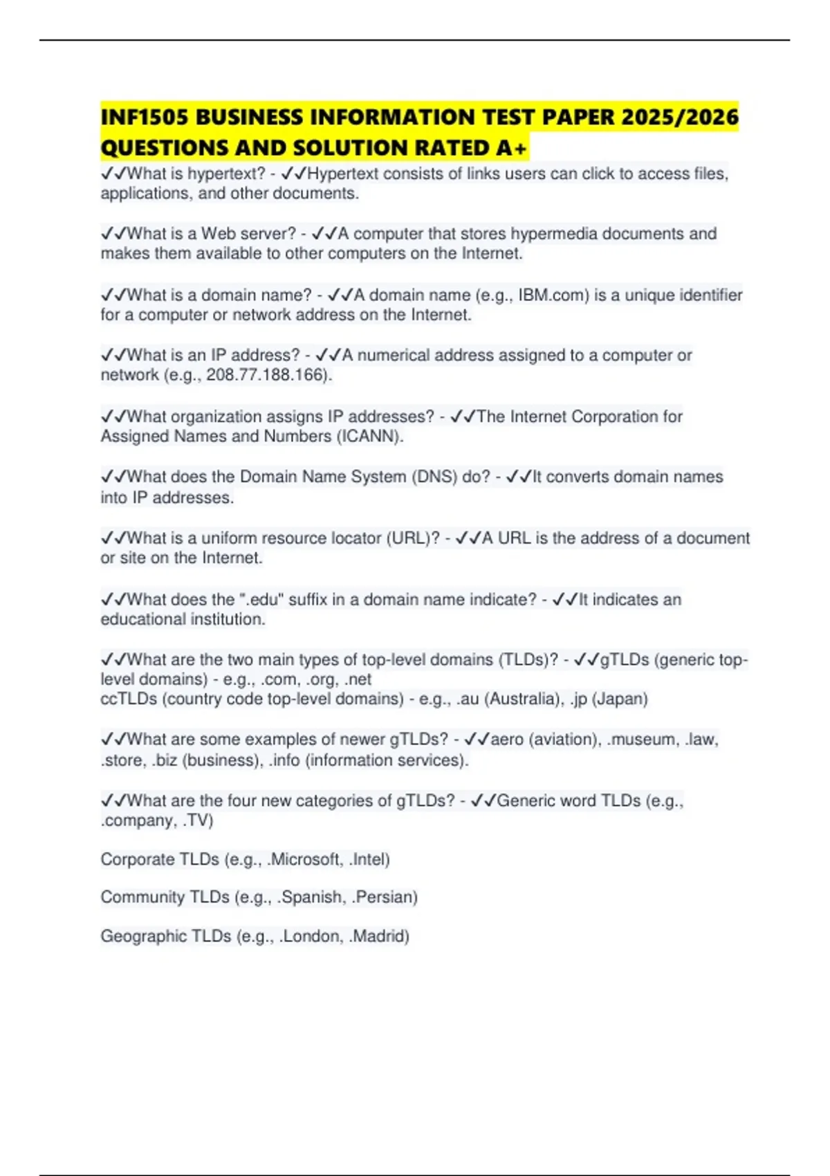 INF1505 BUSINESS INFORMATION TEST PAPER 2025/2026 QUESTIONS AND SOLUTION RATED A+