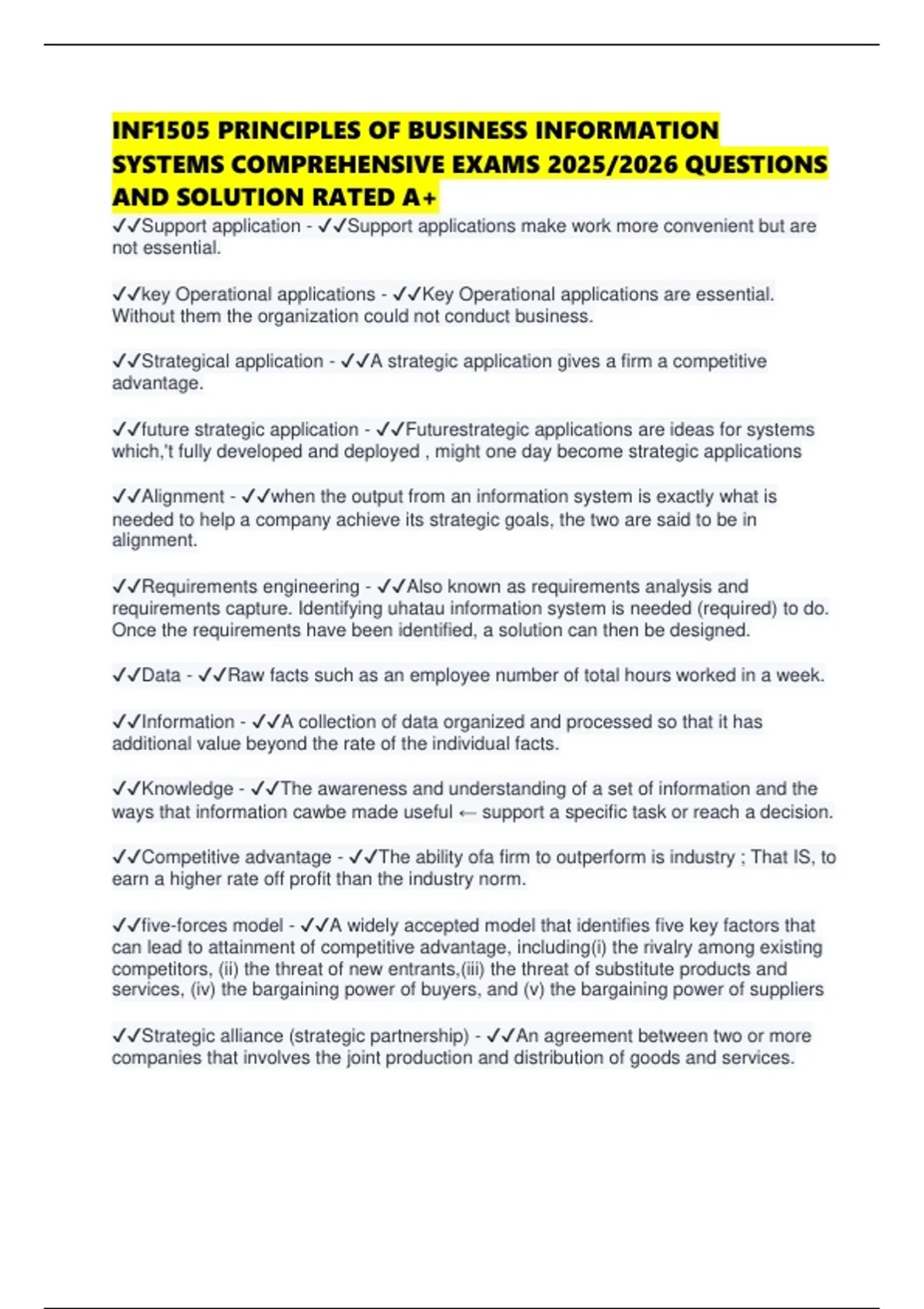 INF1505 PRINCIPLES OF BUSINESS INFORMATION SYSTEMS COMPREHENSIVE EXAMS 2025/2026 QUESTIONS AND SOLUTION RATED A+