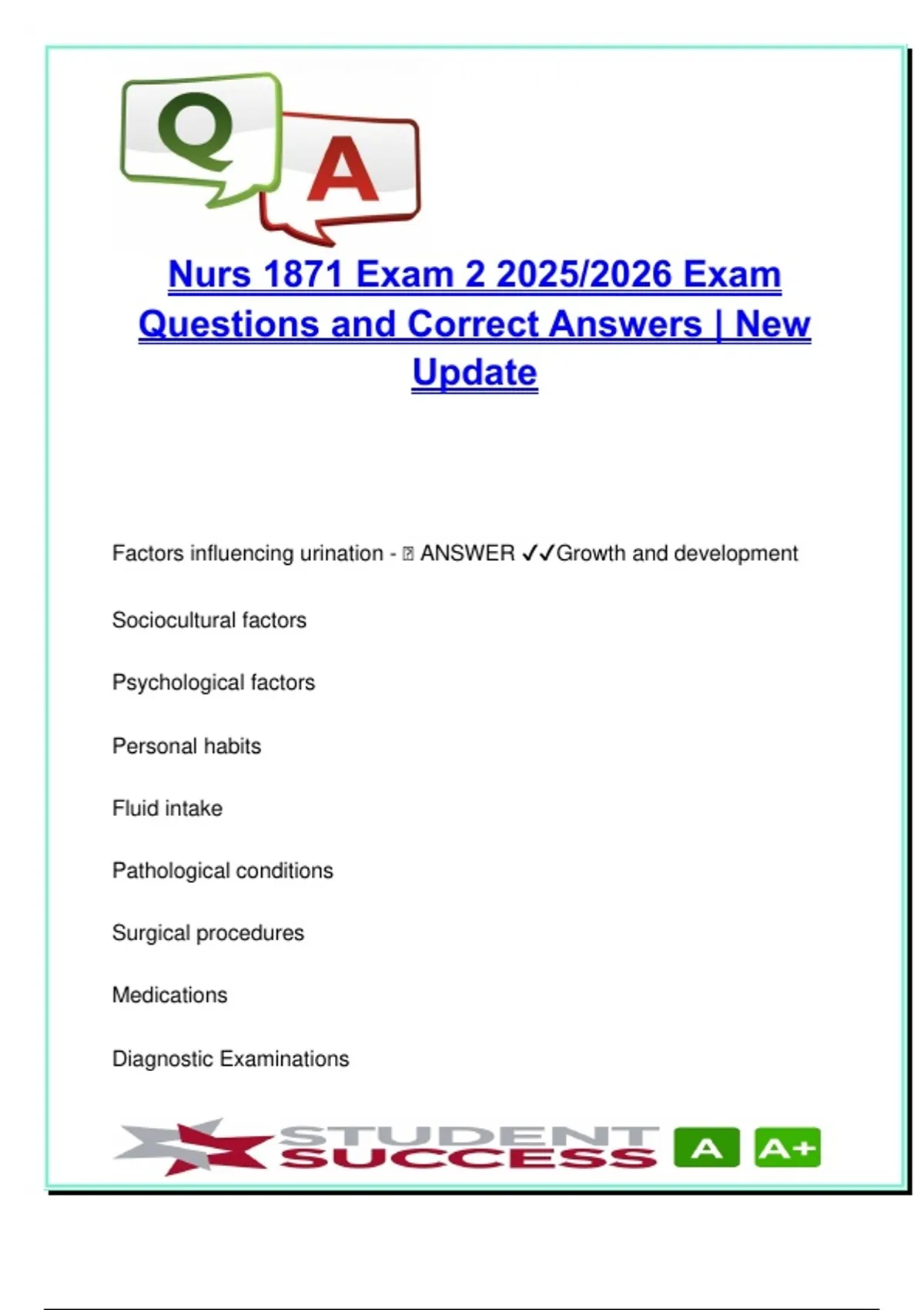 Factors influencing urination - 🧠 ANSWER ✔✔Growth and development