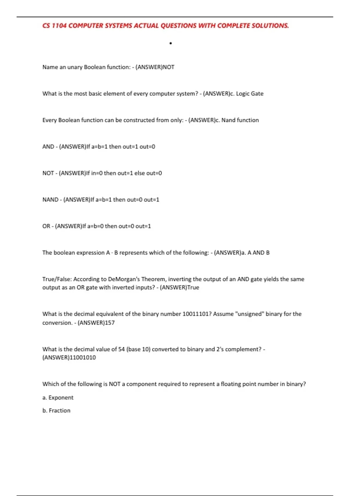 , CS 1104 COMPUTER SYSTEMS ACTUAL QUESTIONS WITH COMPLETE SOLUTIONS.