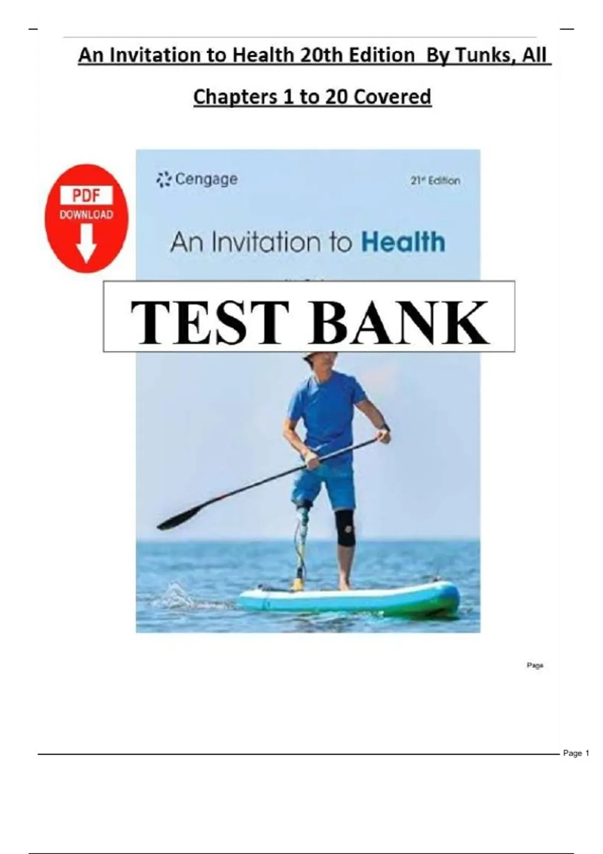 Complete Test Bank - An Invitation to Health 21st Edition - Lisa Tunks, All Chapters 1 to 20 Covered