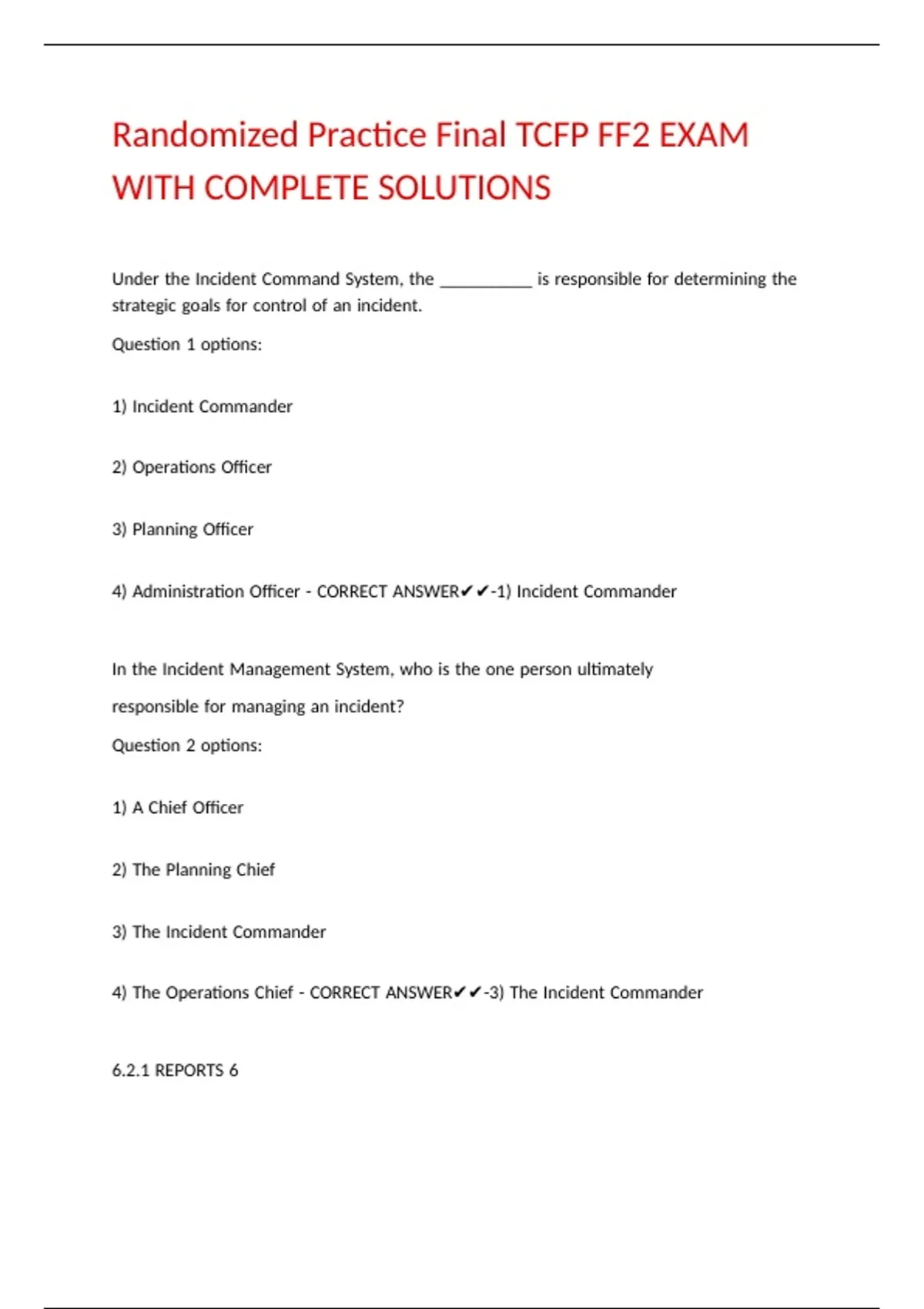 Randomized Practice Final TCFP FF2 EXAM WITH COMPLETE SOLUTIONS