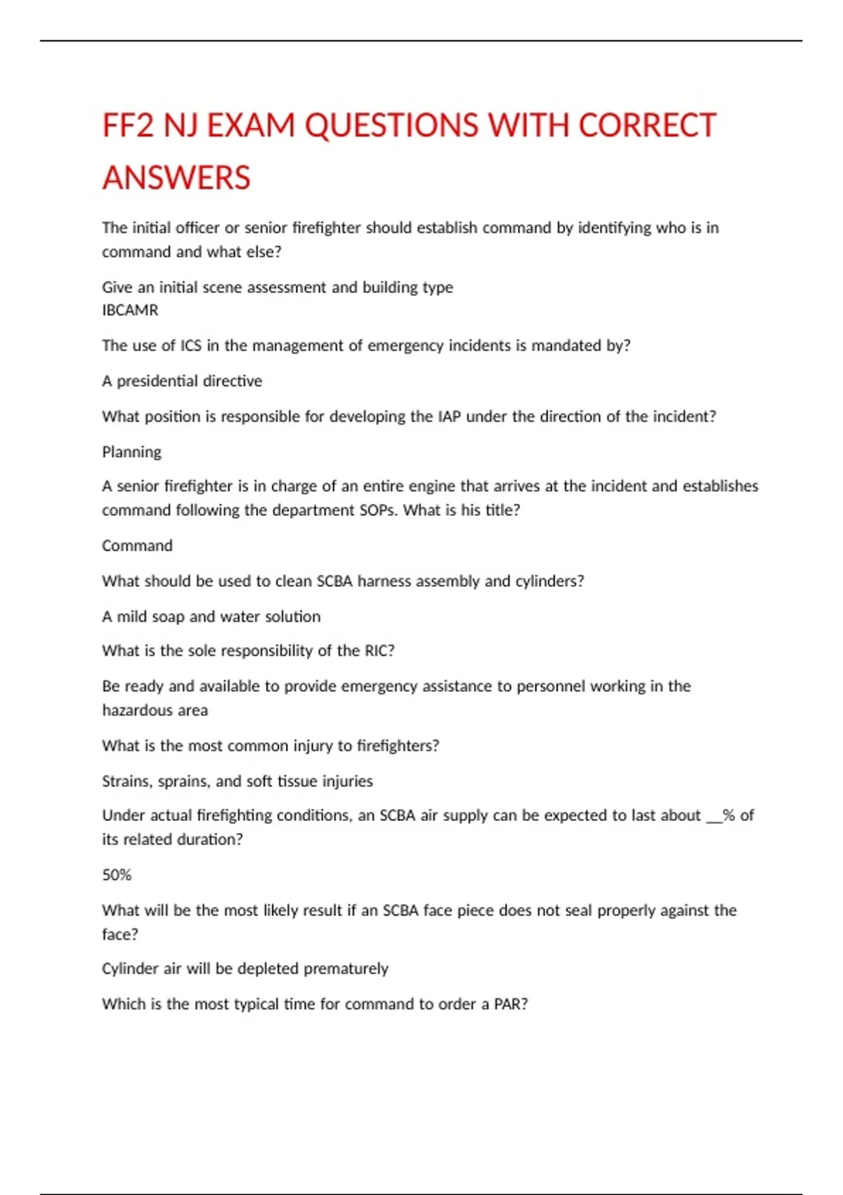 FF2 NJ EXAM QUESTIONS WITH CORRECT