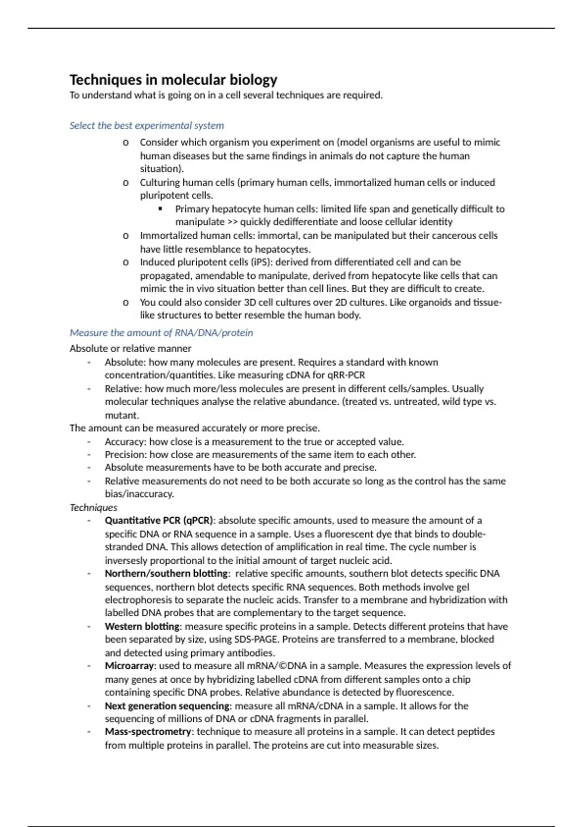 Samenvatting - Advanced molecular biology (NWI-BBO17C)
