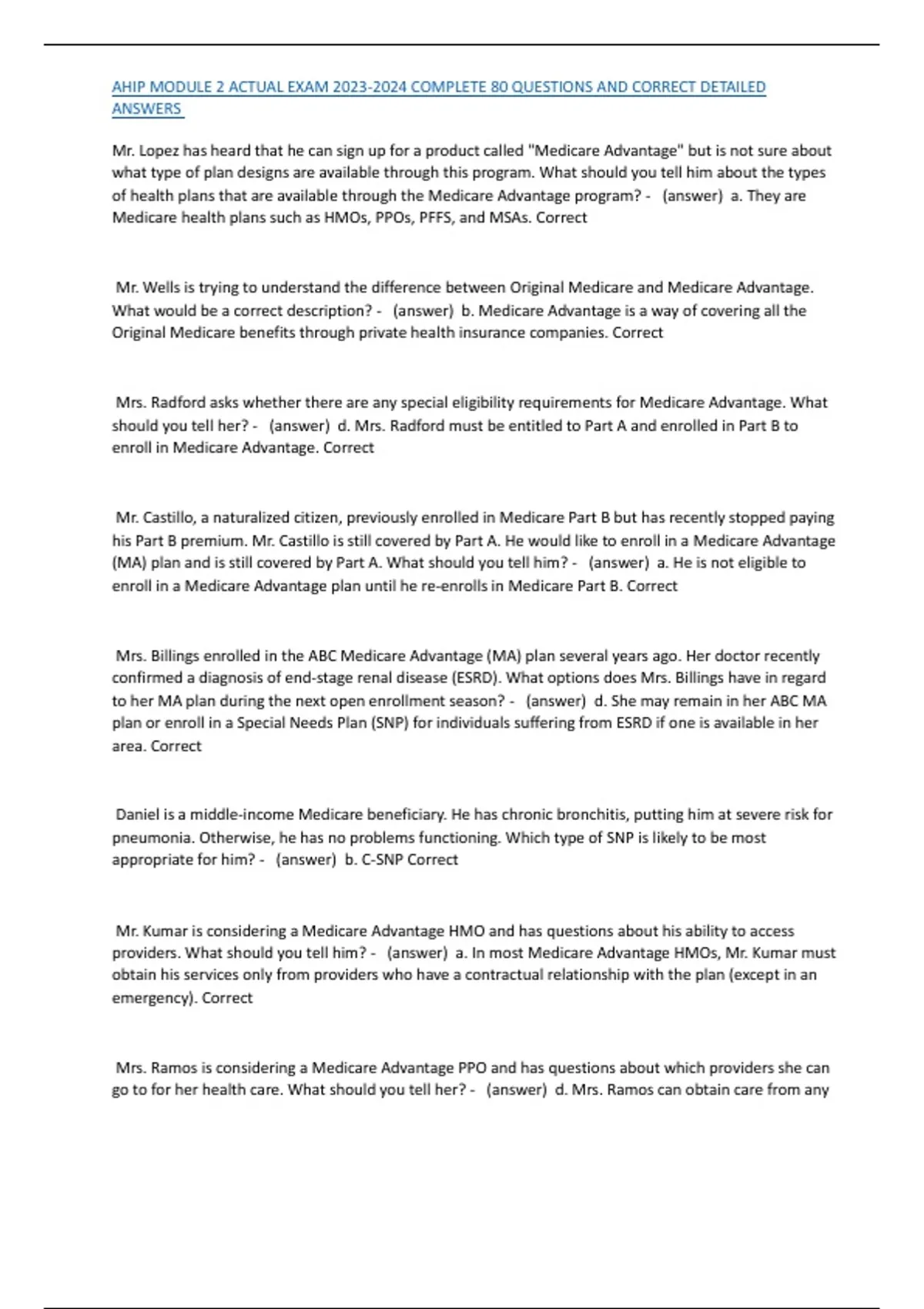 AHIP MODULE 2 ACTUAL EXAM COMPLETE 80 QUESTIONS AND CORRECT DETAILED ANSWERS