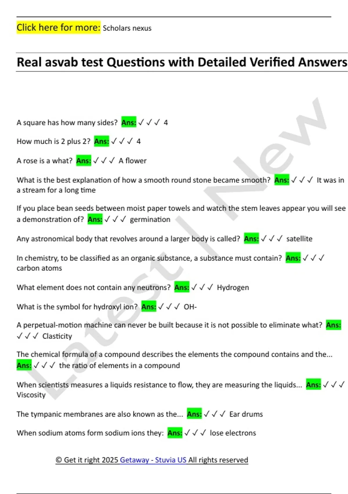 Real asvab test Questions with Detailed Verified Answers