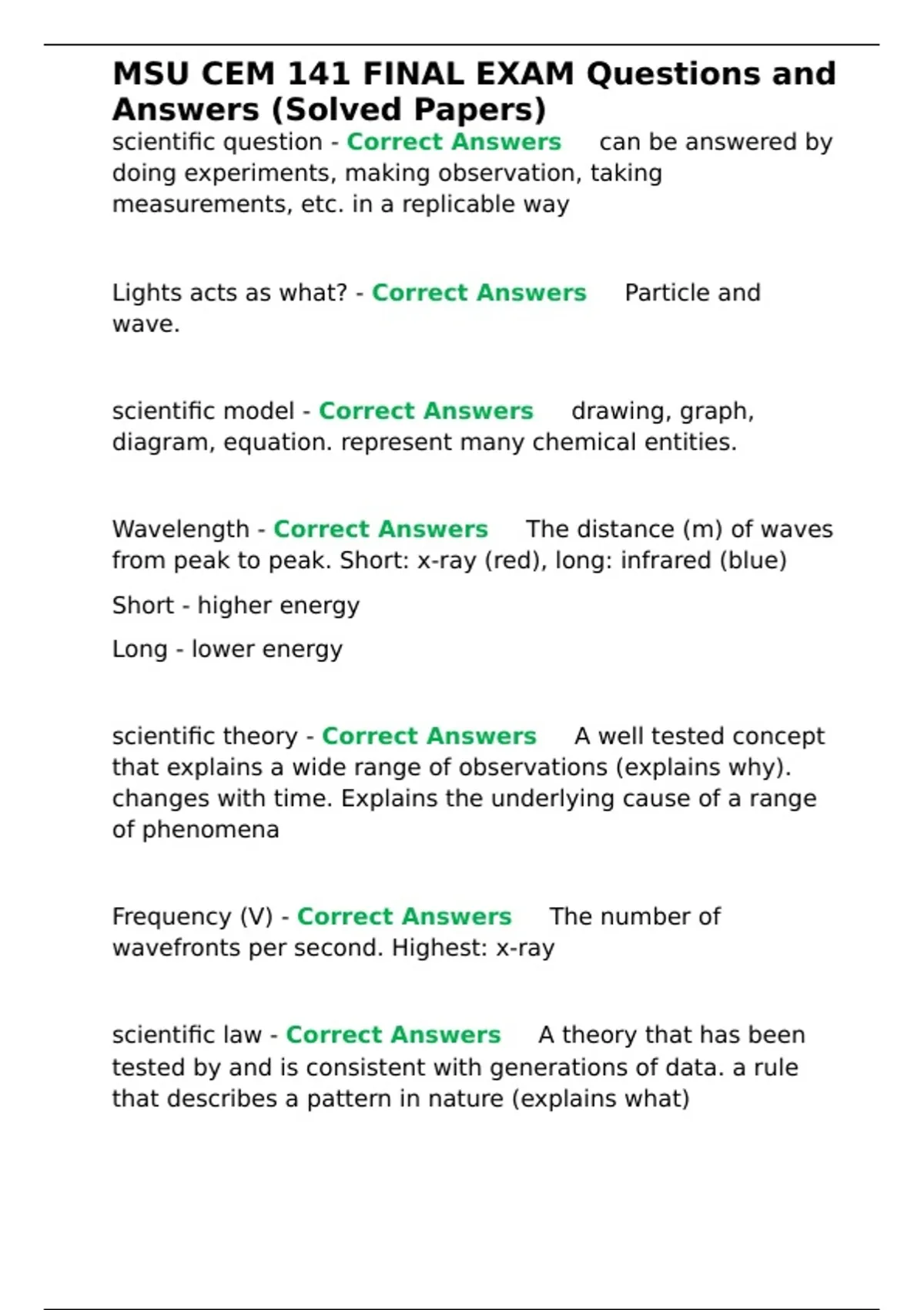 , MSU CEM 141 FINAL EXAM Questions and
