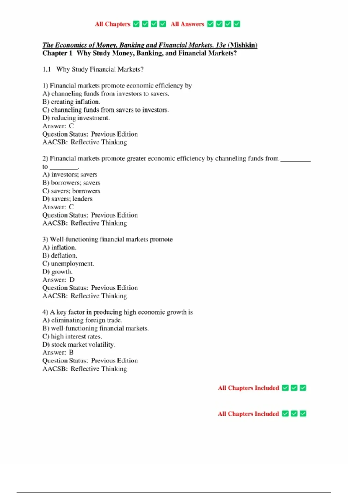 The Economics of Money, Banking, and Financial Markets – 13th Edition – Frederic S. Mishkin – Complete Test Bank (Chapters 1–25)