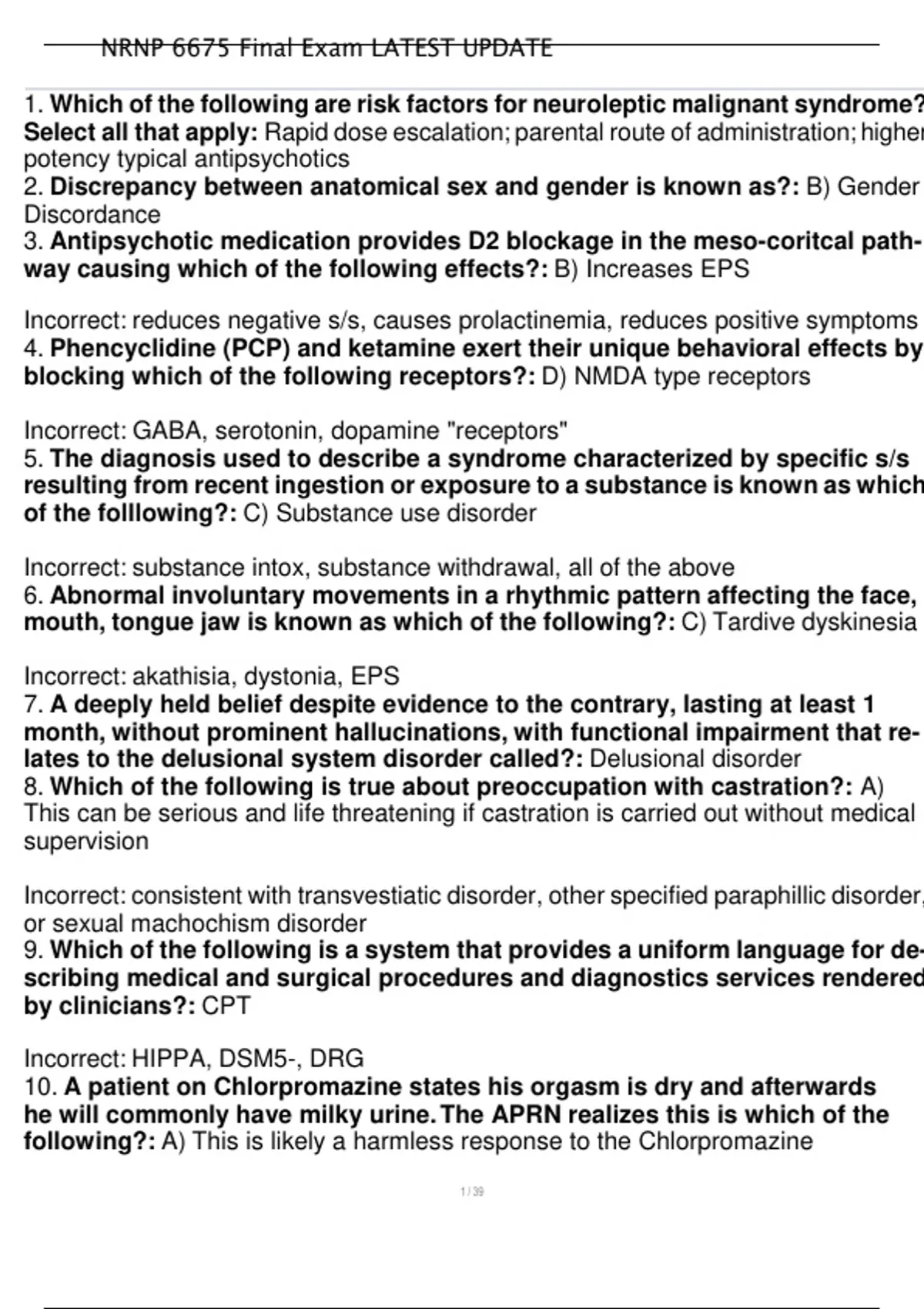 , NRNP 6675 Final Exam LATEST UPDATE
