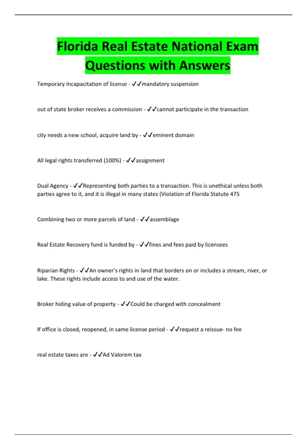 parties agree to it, and it is illegal in many states (Violation of Florida Statute 475