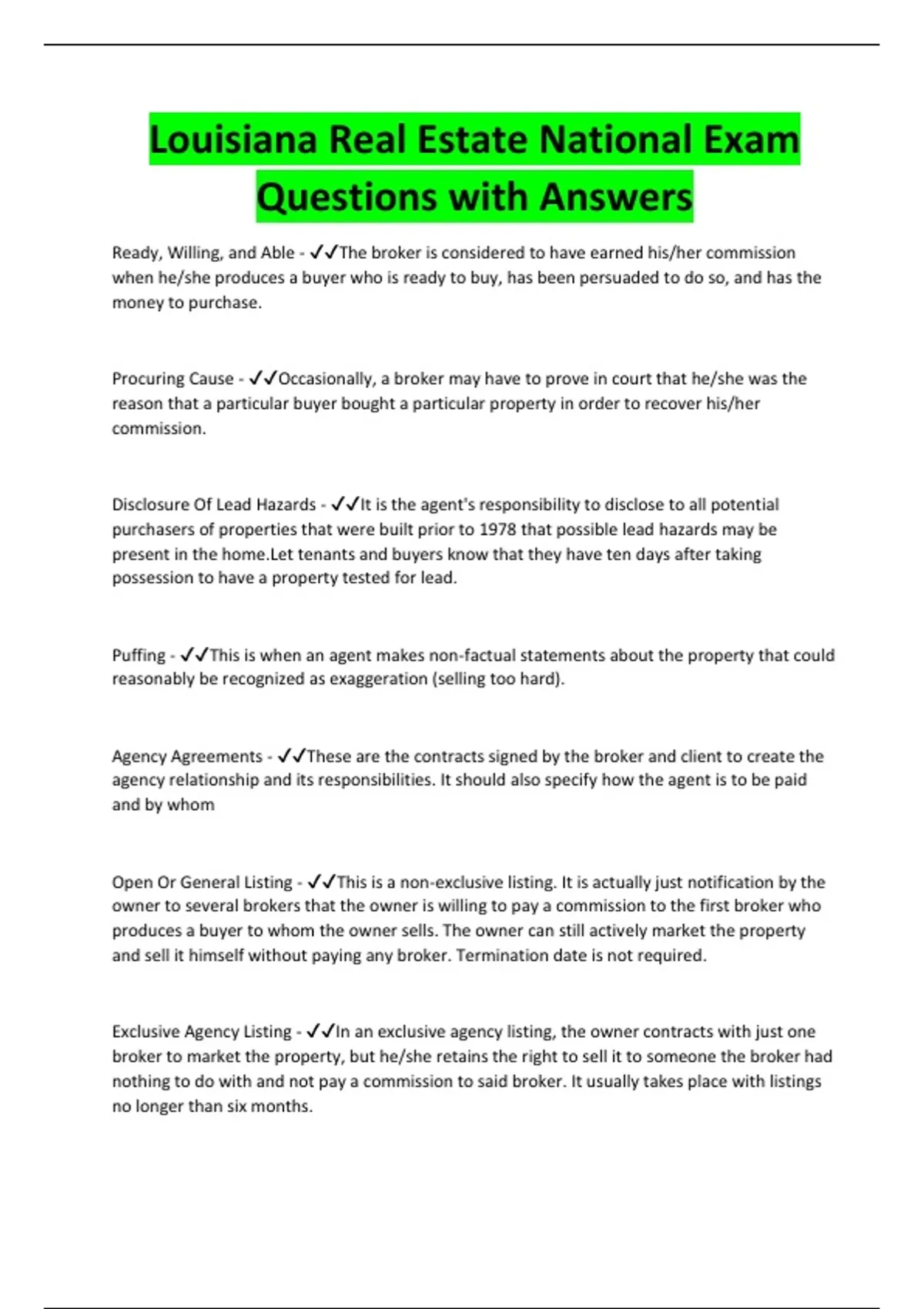 Agency Agreements - ✔✔These are the contracts signed by the broker and client to create the