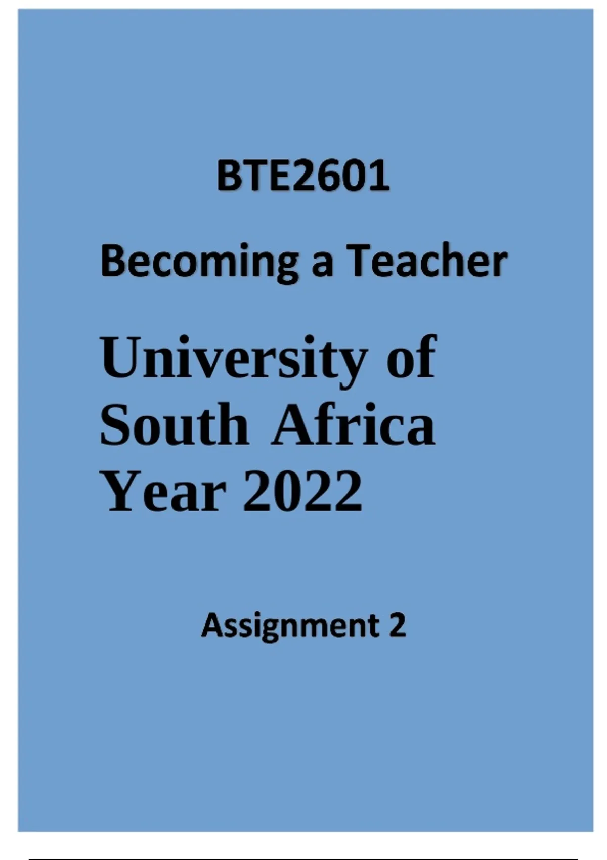 BTE2601 BECOMING A TEACHER OF UNIVERSITY OF SOUTH AFRICA(ASSIGNMENT)