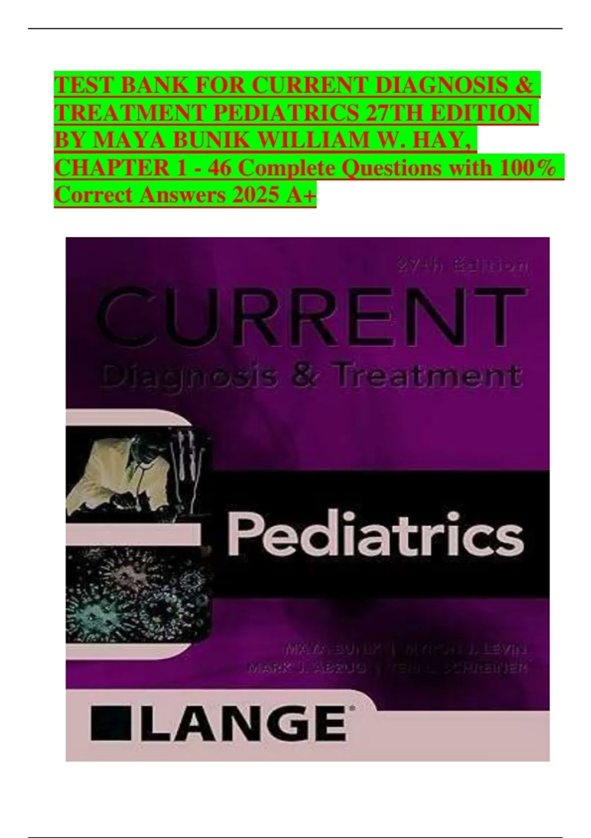 Current Diagnosis and Treatment Pediatrics, 27th Edition Test Bank