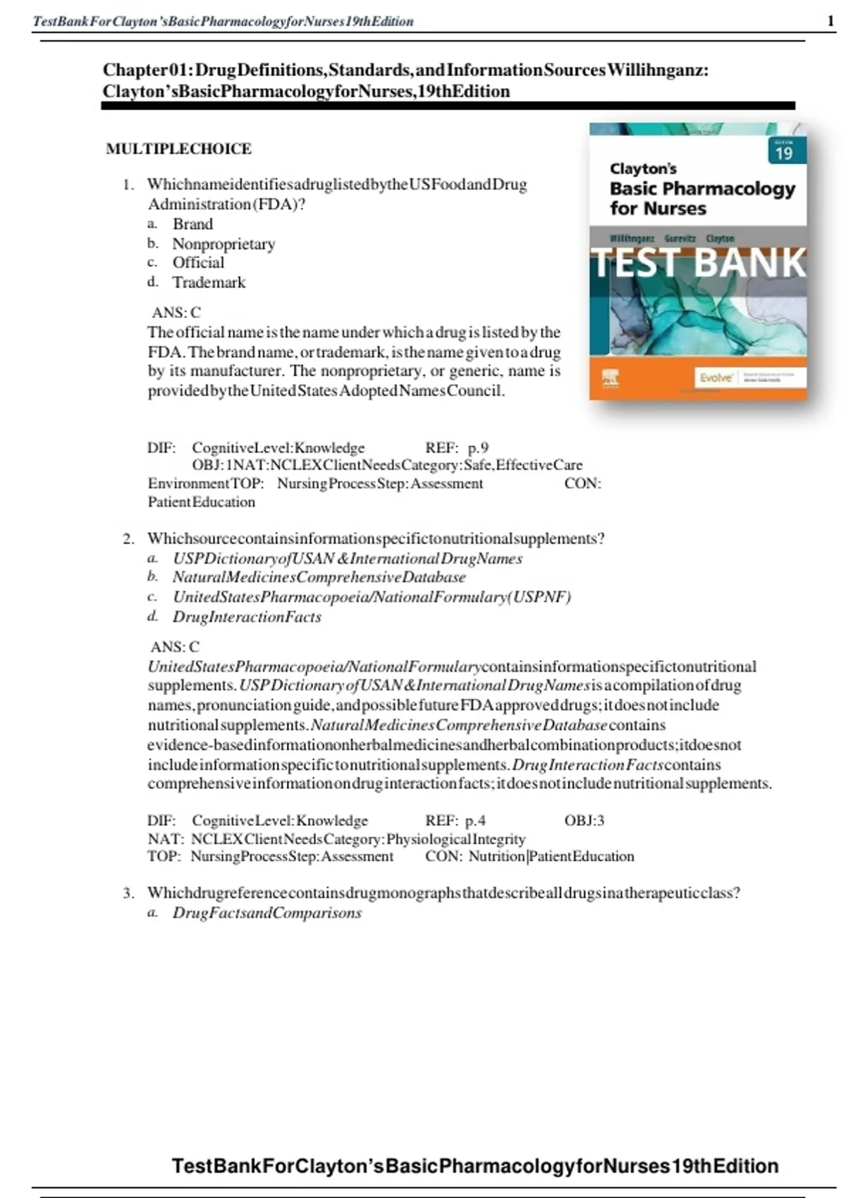 , TestBank For Clayton’sBasic PharmacologyforNurses19thEdition