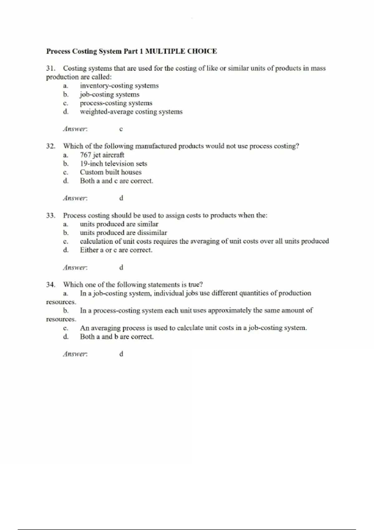 Process costing system part one multiple choiceProcess costing system part one multiple choice