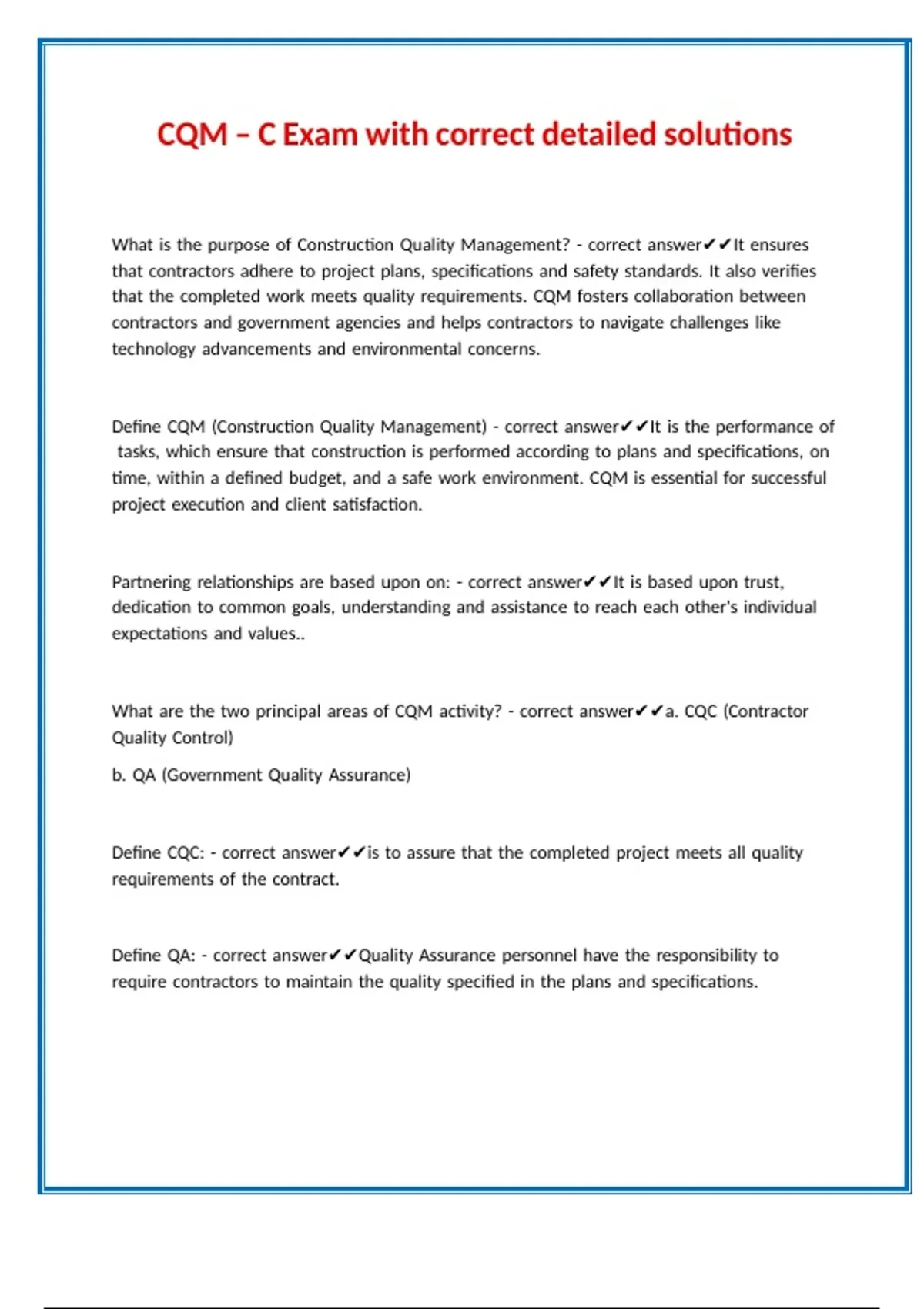 Define CQM (Construction Quality Management) - correct answer✔✔It is the performance of