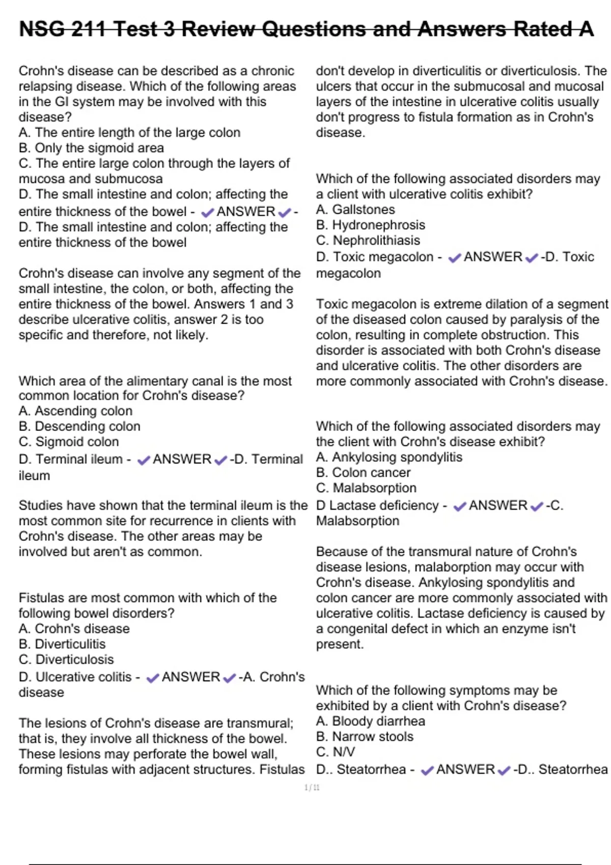 NSG 211 Test 3 Review Questions and Answers Rated A