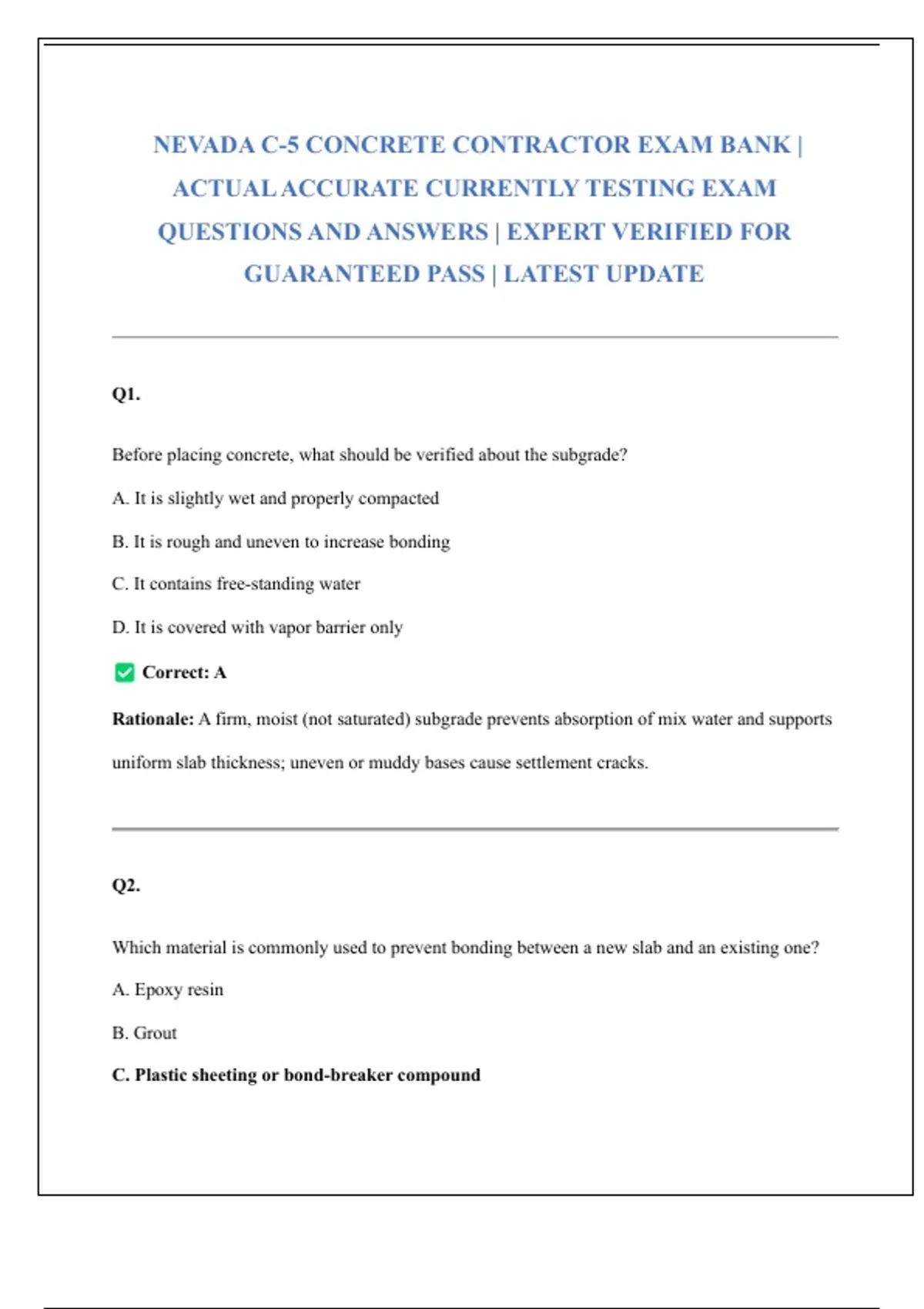 NEVADA C-5 CONCRETE CONTRACTOR EXAM BANK |