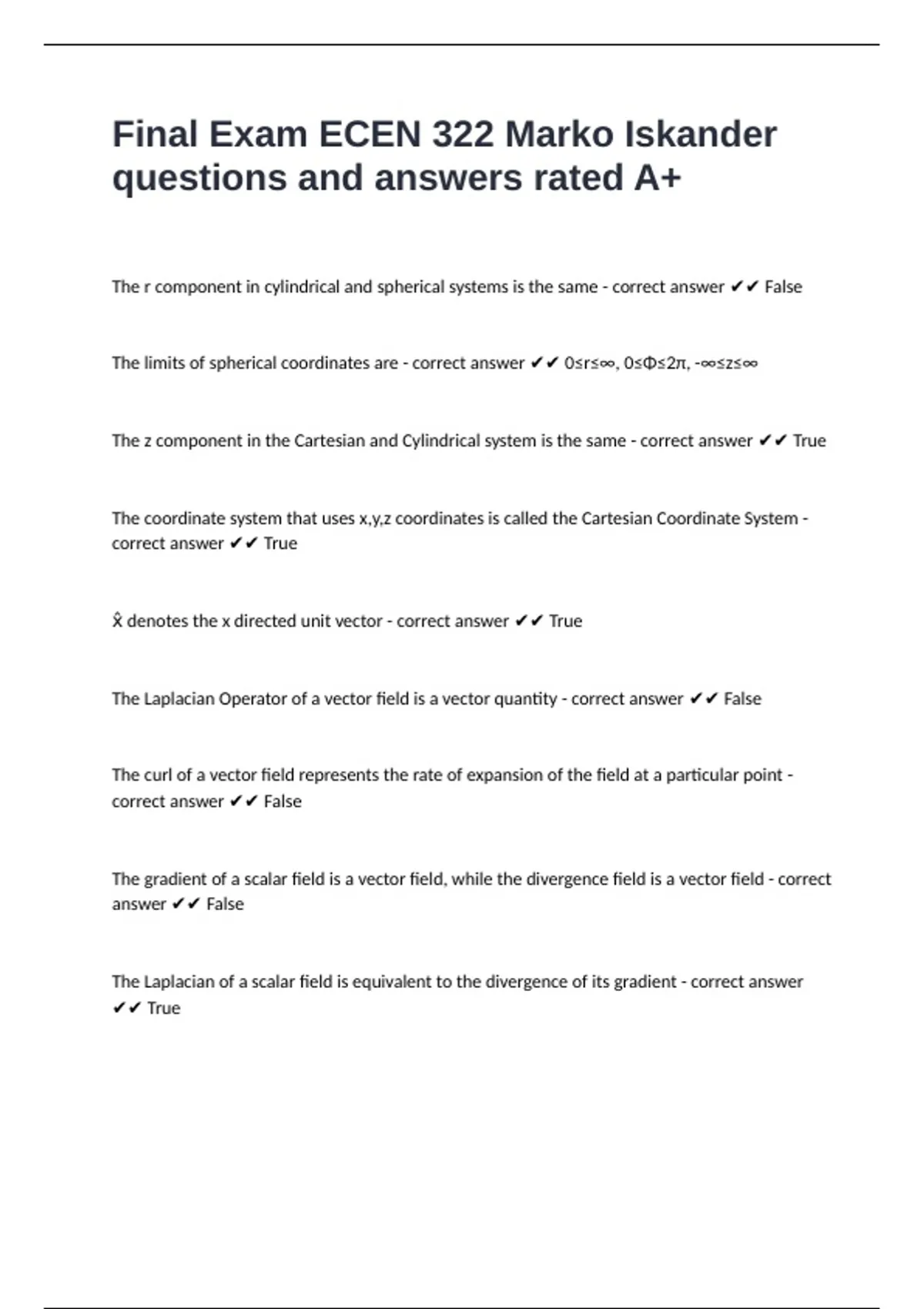 The gradient operator () is used to find the rate of change of a scalar field - correct answer ✔✔