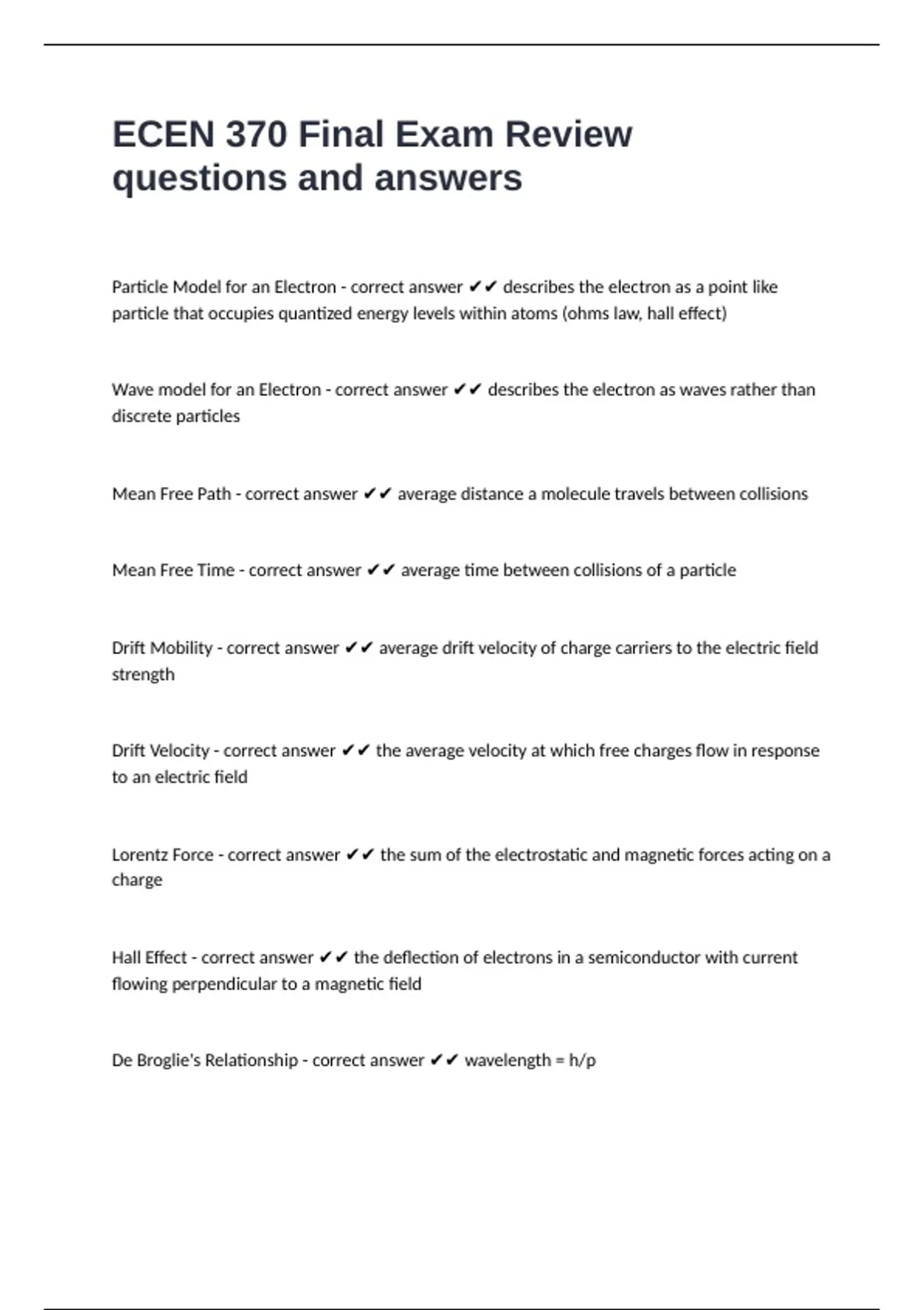 Drift Mobility - correct answer ✔✔ average drift velocity of charge carriers to the electric field