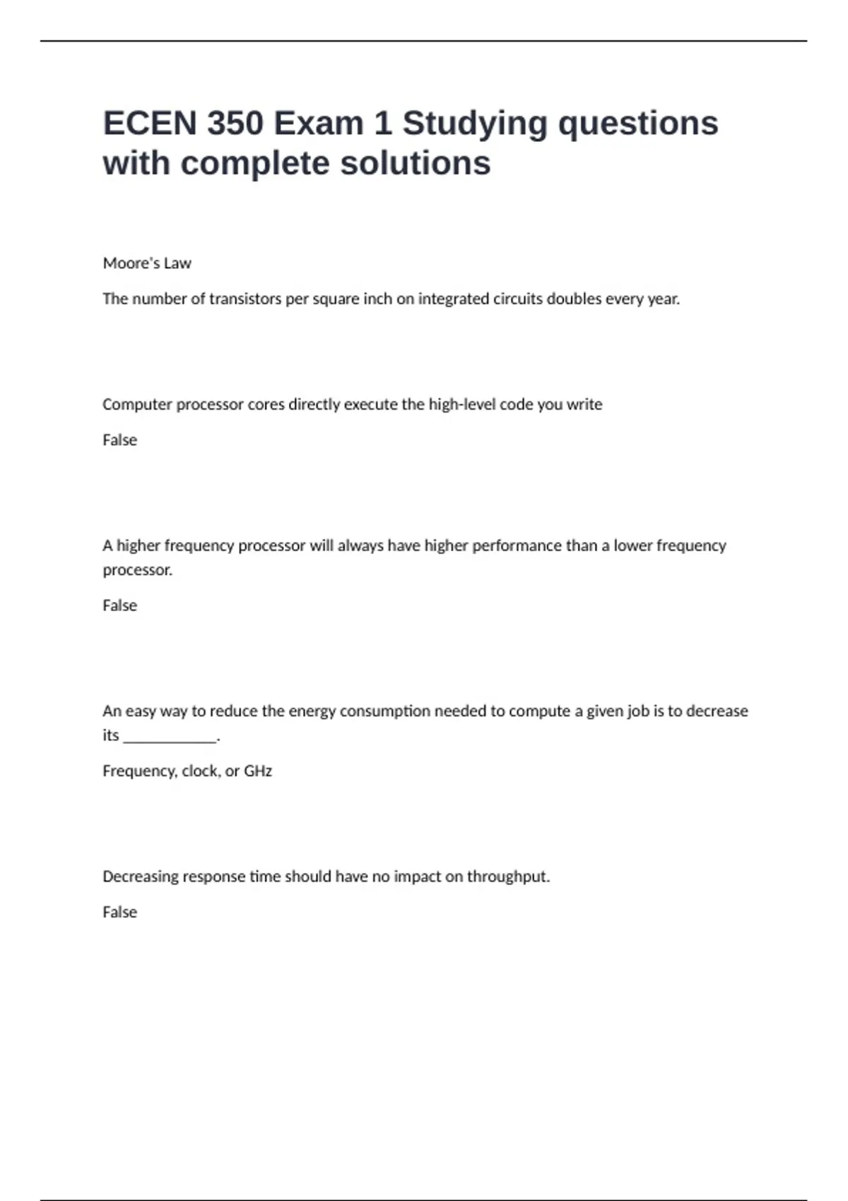 ECEN 350 Exam 1 Studying questions with complete solutions