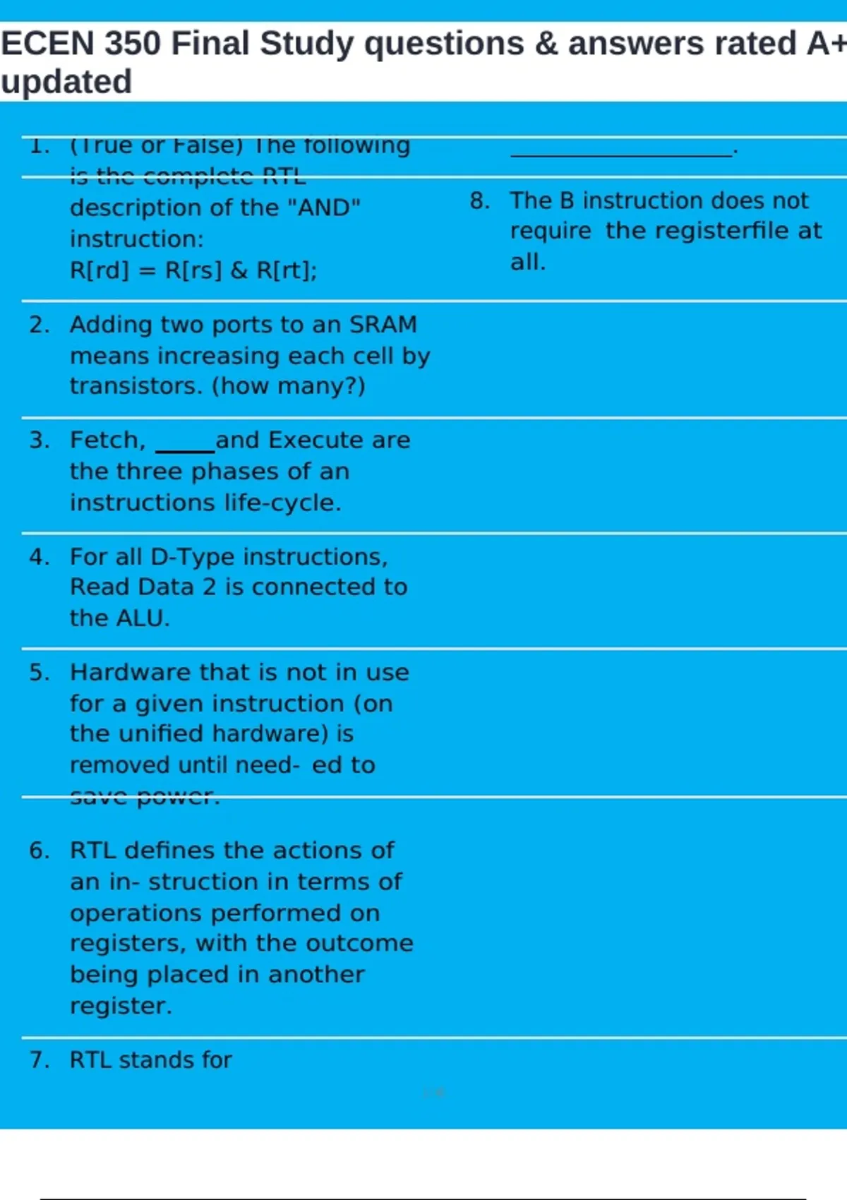 ECEN 350 Final Study questions & answers rated A+ updated
