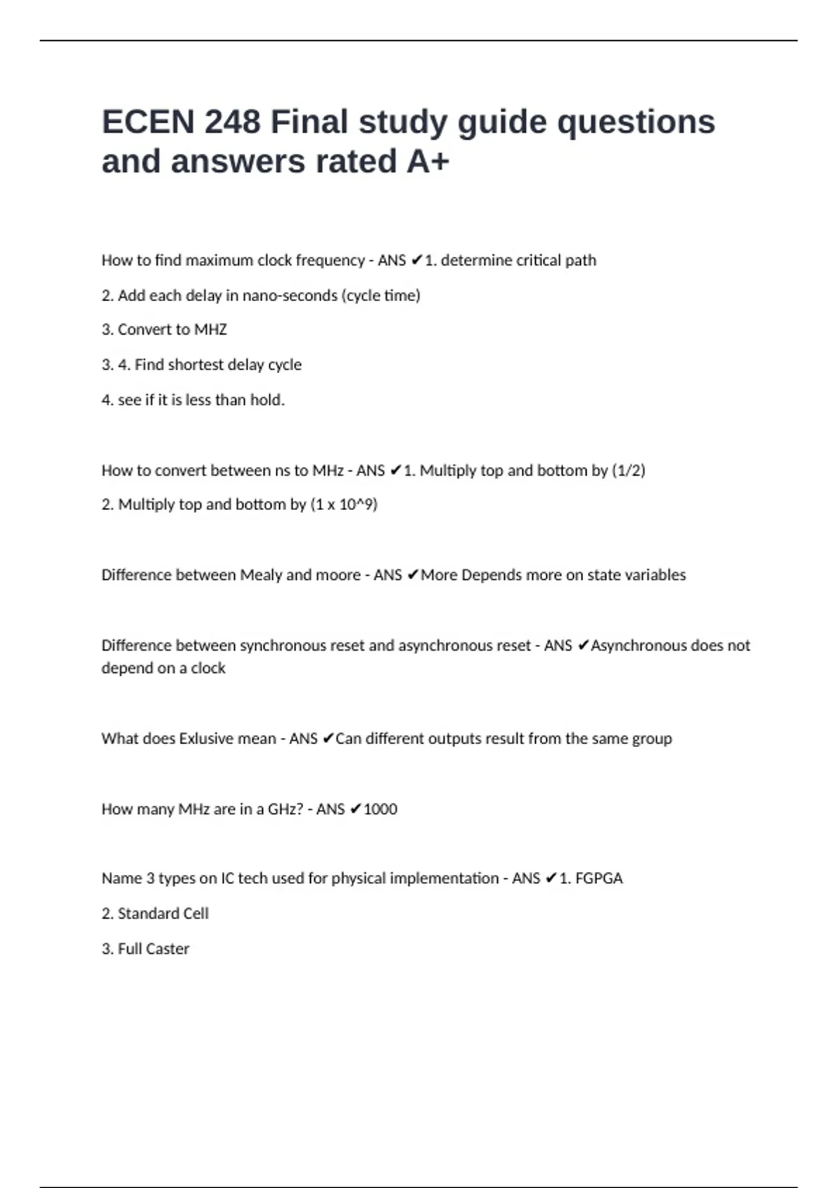 How to find maximum clock frequency - ANS ✔1. determine critical path