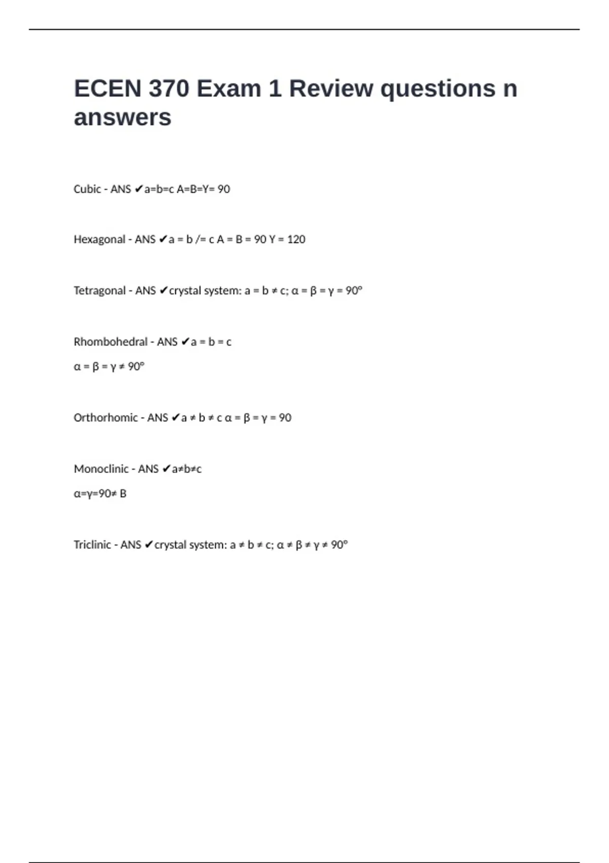 Hexagonal - ANS ✔a = b /= c A = B = 90 Y = 120