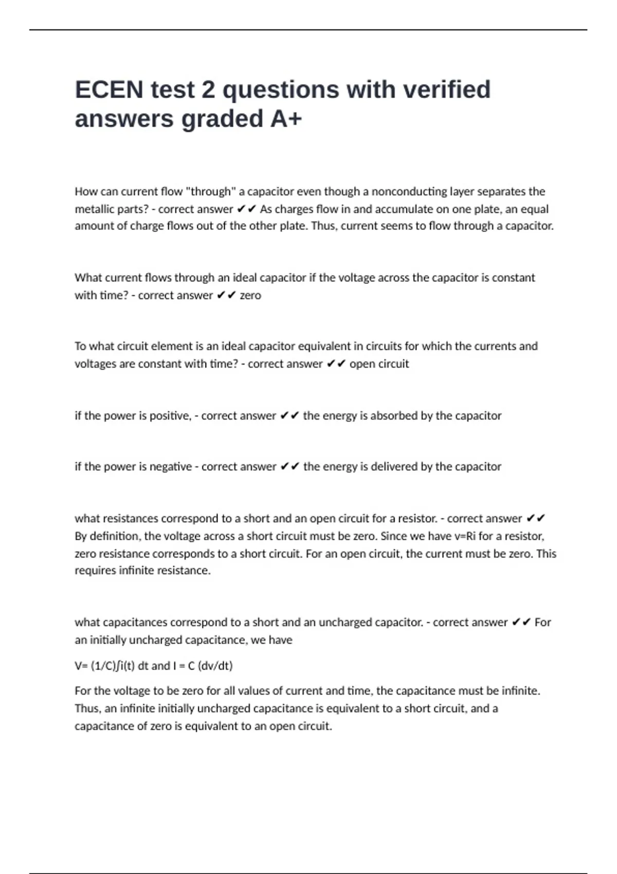 what capacitances correspond to a short and an uncharged capacitor. - correct answer ✔✔ For