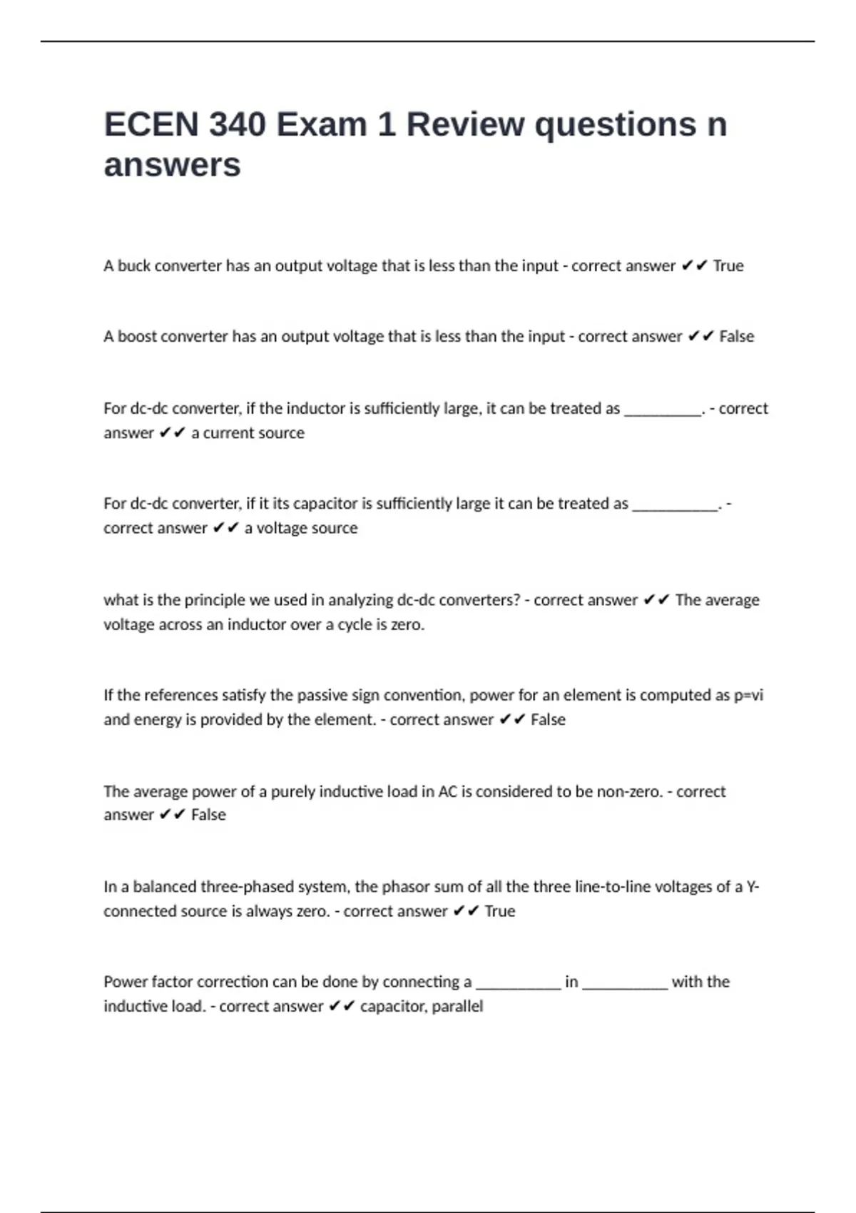 A buck converter has an output voltage that is less than the input - correct answer ✔✔ True