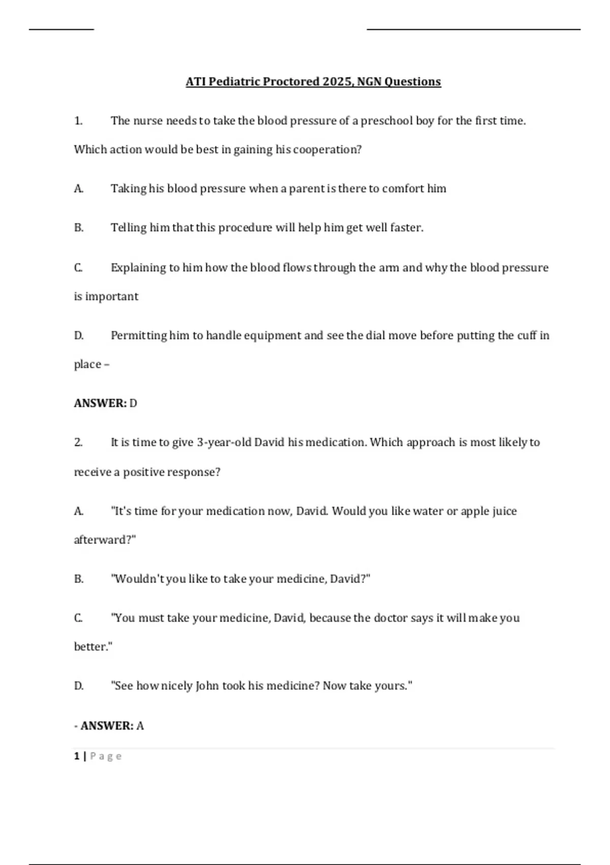 1. The nurse needs to take the blood pressure of a preschool boy for the first time.