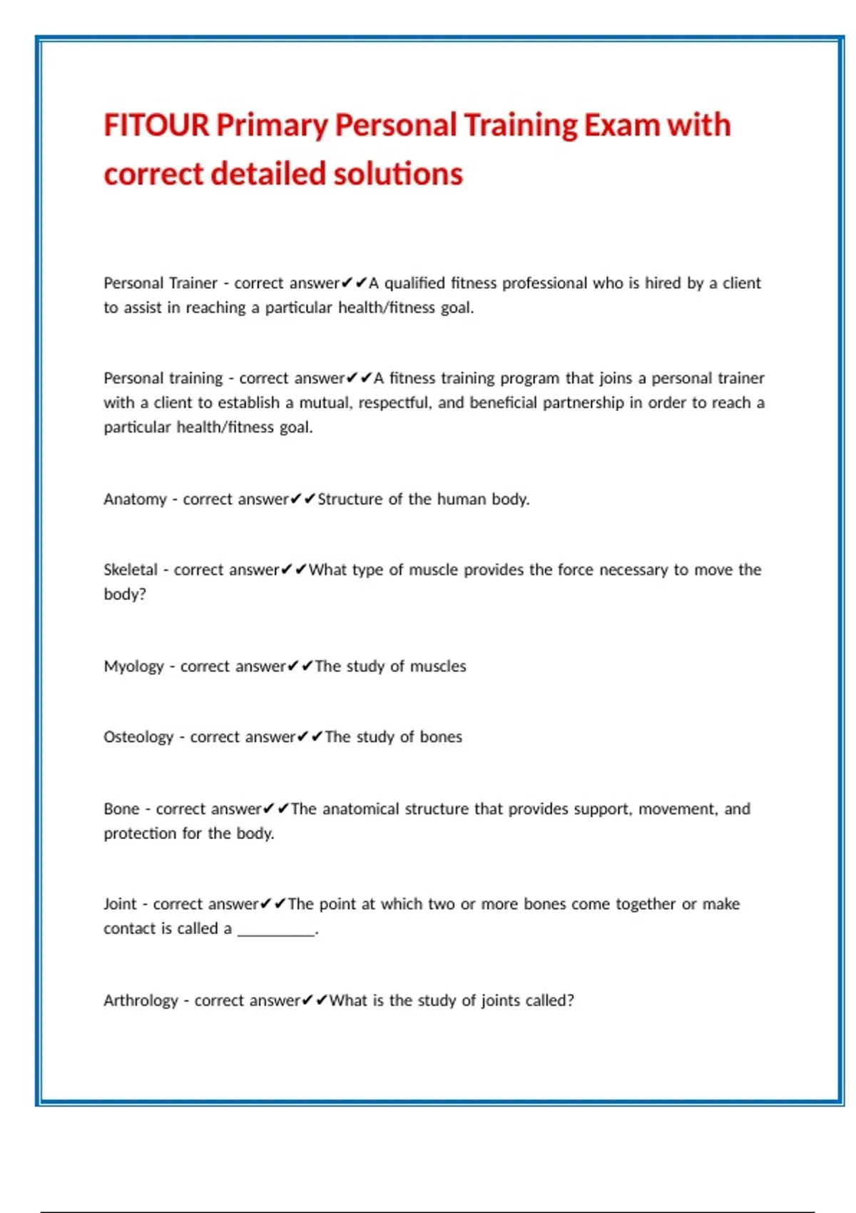 FITOUR Primary Personal Training Exam with correct detailed solutions