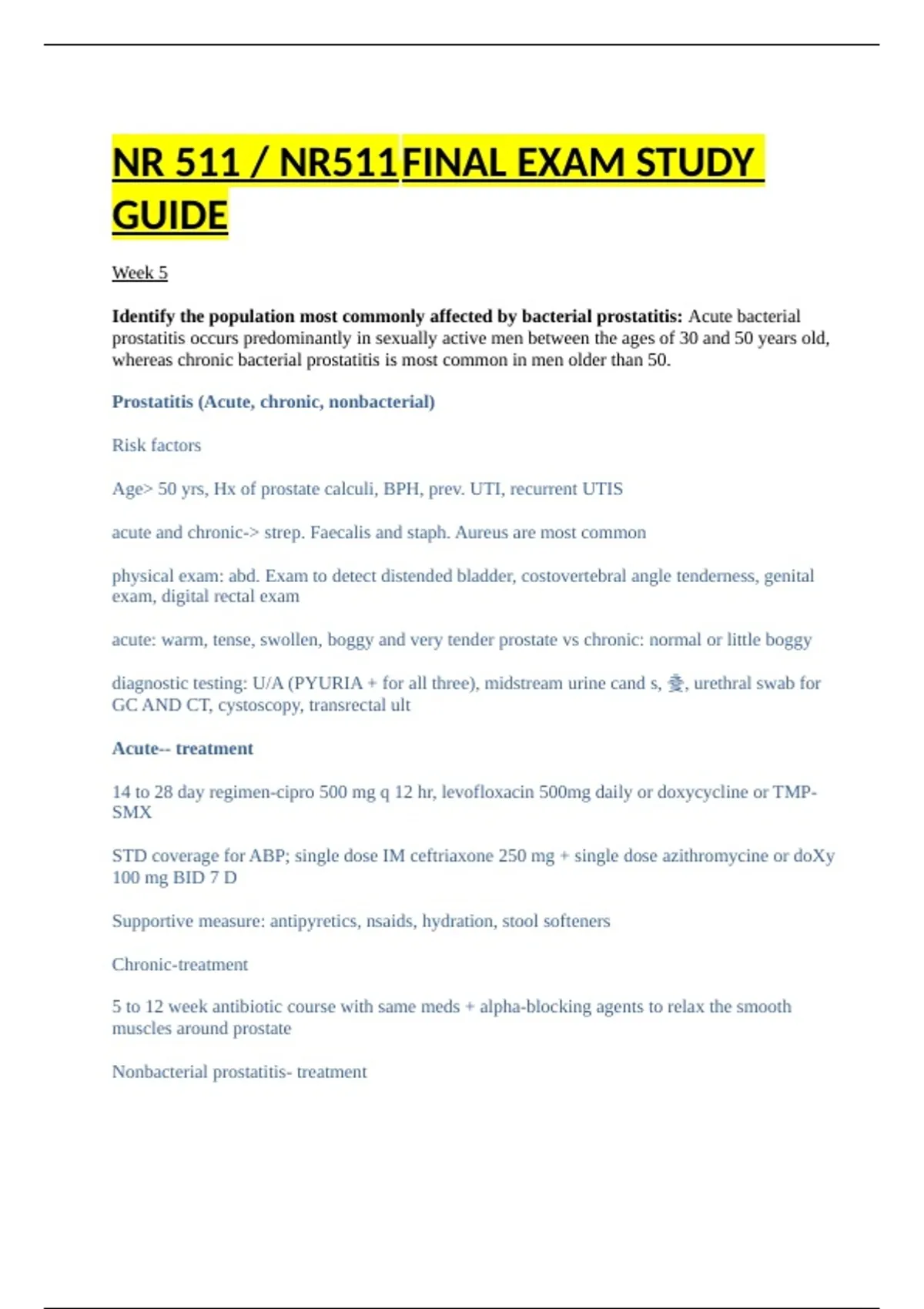 NR 511 / NR511FINAL EXAM STUDY GUIDE