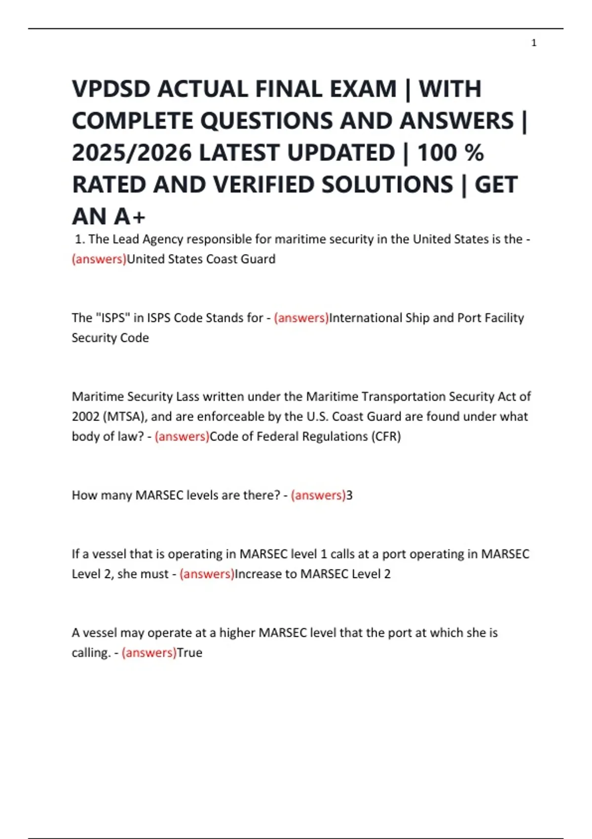 Vessel Security Plan - (answers)VSO