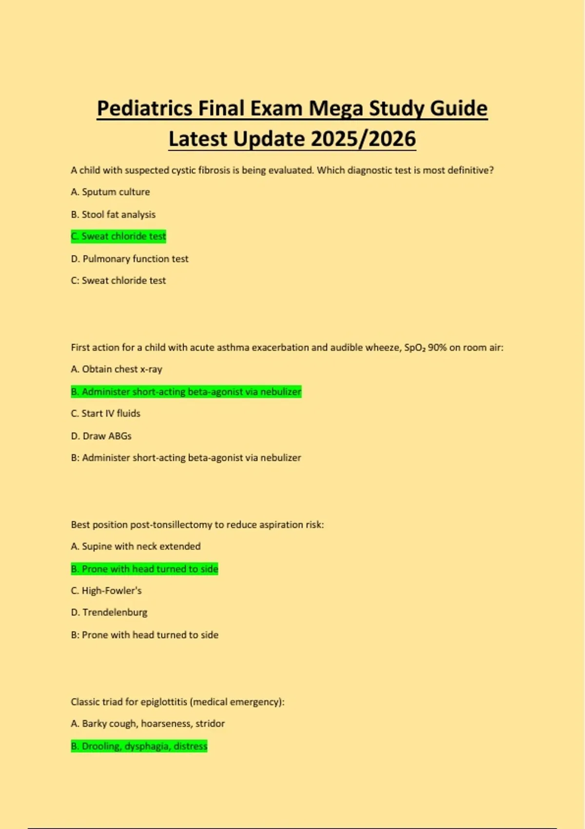 Pediatrics Final Exam Mega Study Guide