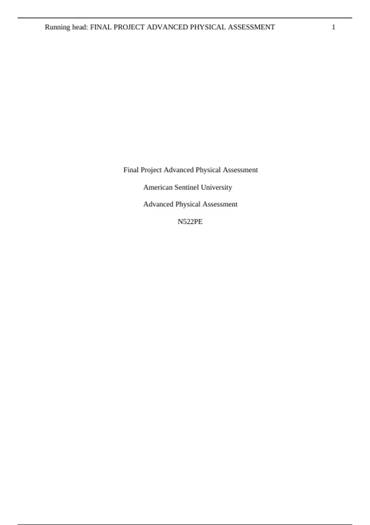 Running head: FINAL PROJECT ADVANCED PHYSICAL ASSESSMENT 1